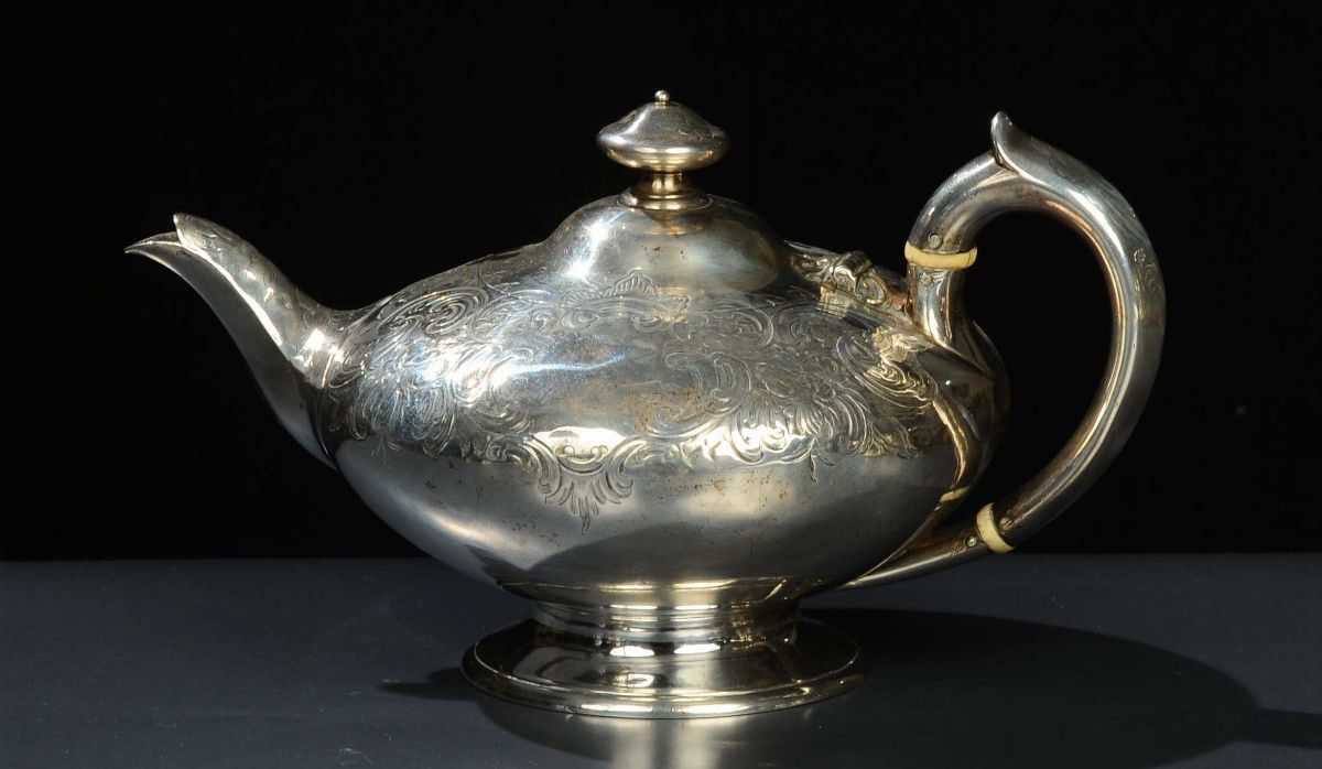 Teiera in argento, Londra 1850 circa, orafo Barnard, gr. 600 circa
