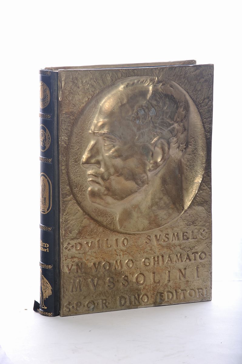 Edizione di lusso ad personam. Esemplare per William Rosati, autografato dall'autore. Lussuosa rilegatura in metallo dorato con bassorilievo raffigurante il profilo del Duce con firma incisa dello scultore Rossetti. Il testo è illustrato da numerosi artisti tra i quali: G.Balla, M.Sironi, G. Manzù e Benito Mussolini stesso