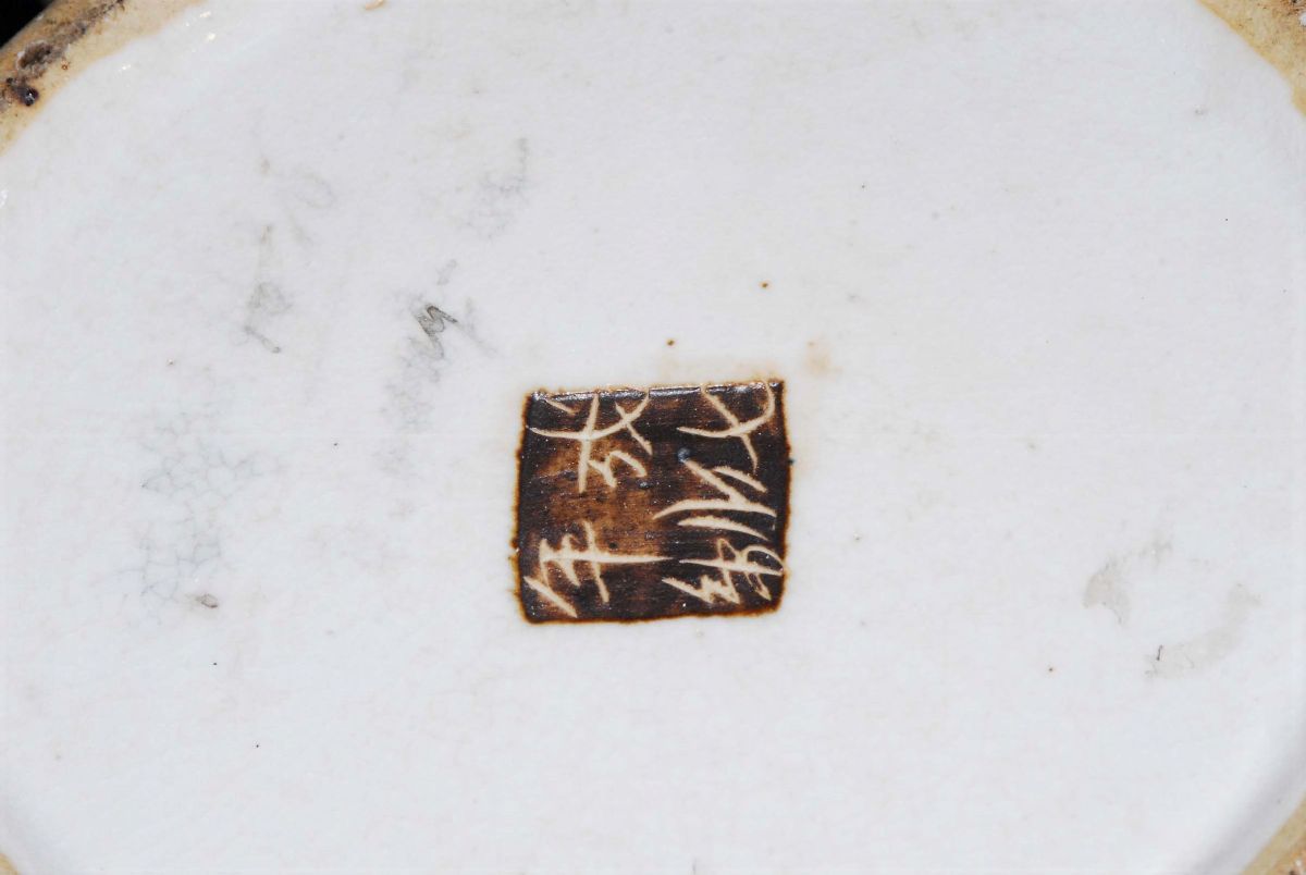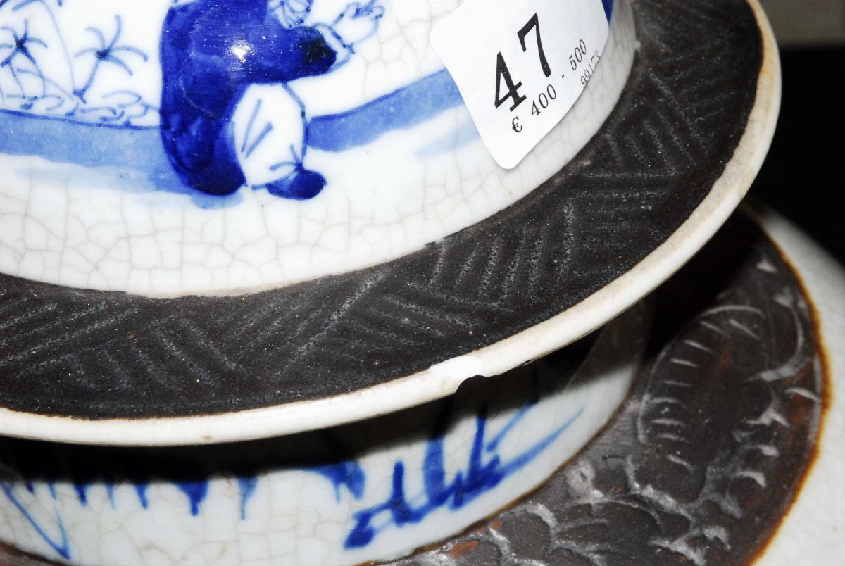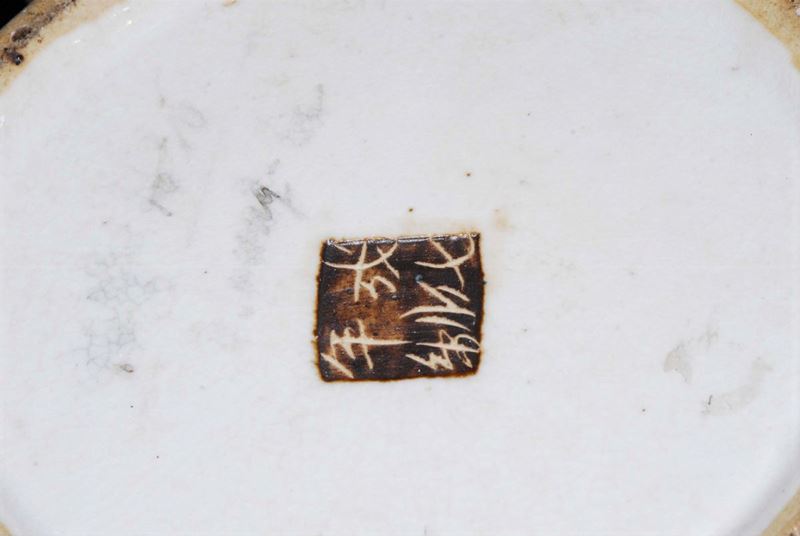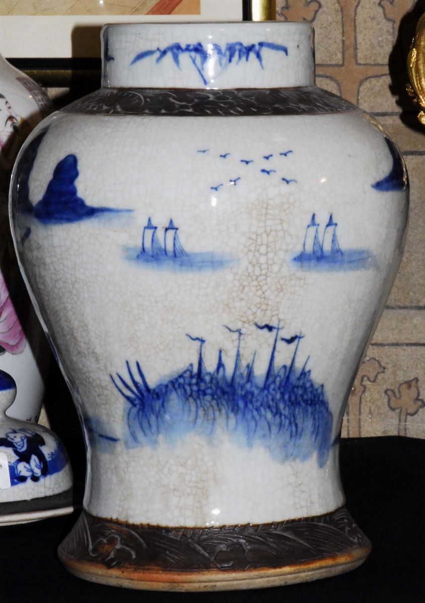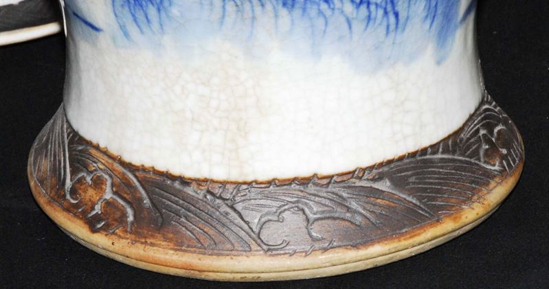 decoro monocromo blu su fondo bianco raffigurante paesaggio orientale, altezza cm 46 (difetti)