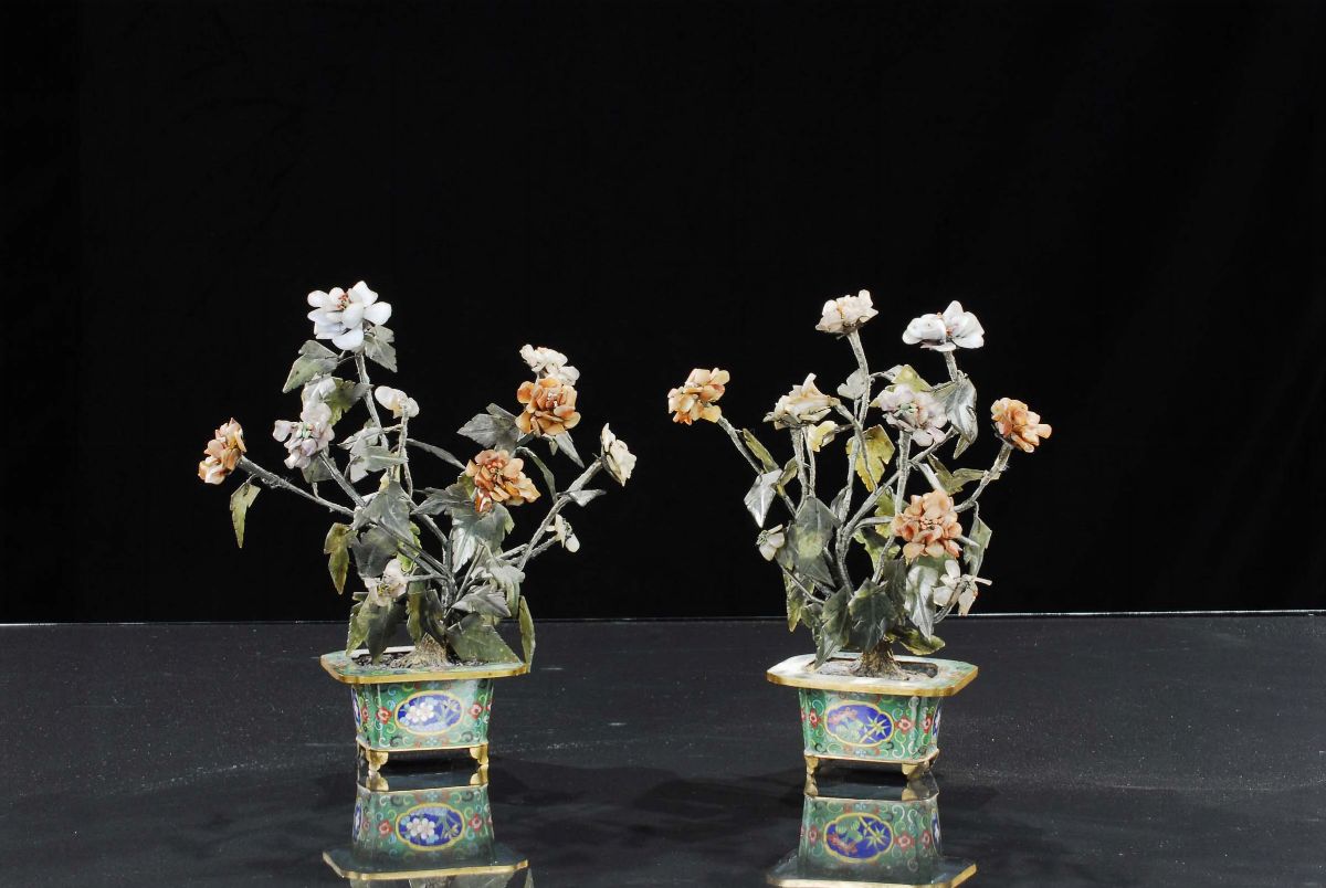 Coppia di vasetti in metallo cloisonnè, Cina XX secolo