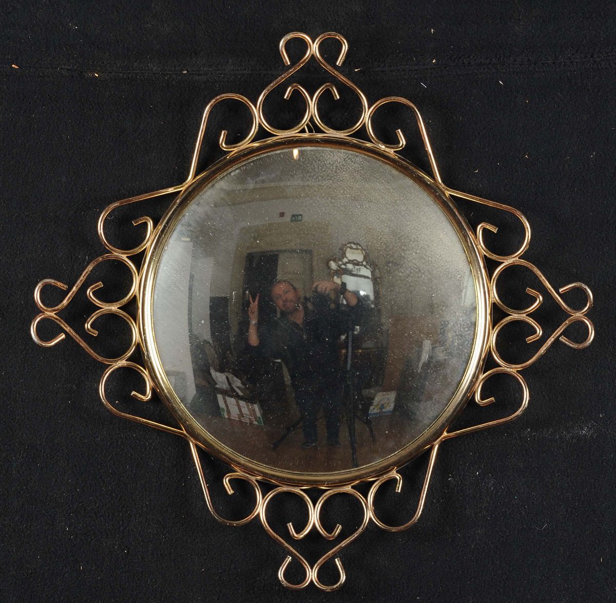specchio bombato in metallo e cornice in metallo dorato, cm 47x47