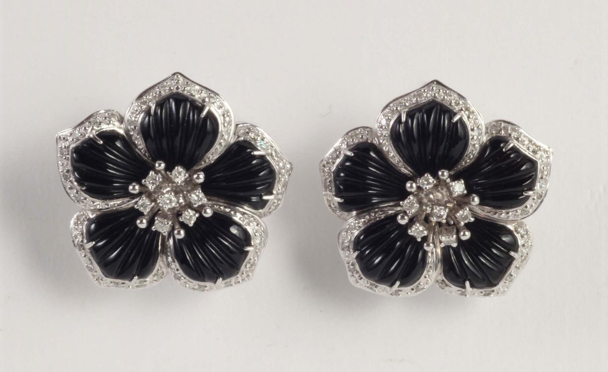 a forma di fiore in oro bianco 18Kt e diamanti taglio rotondo a contorno