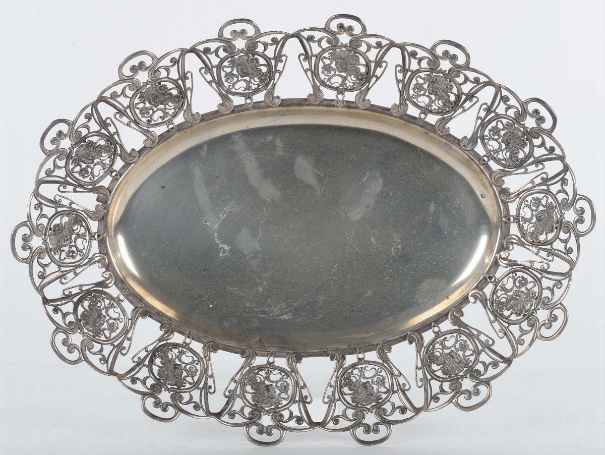 Vassoio in argento con bordo traforato