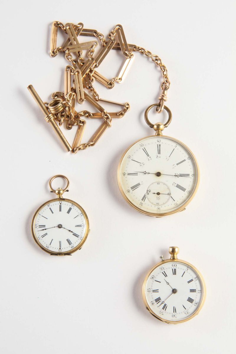 da tre orologi da tasca ed una catena