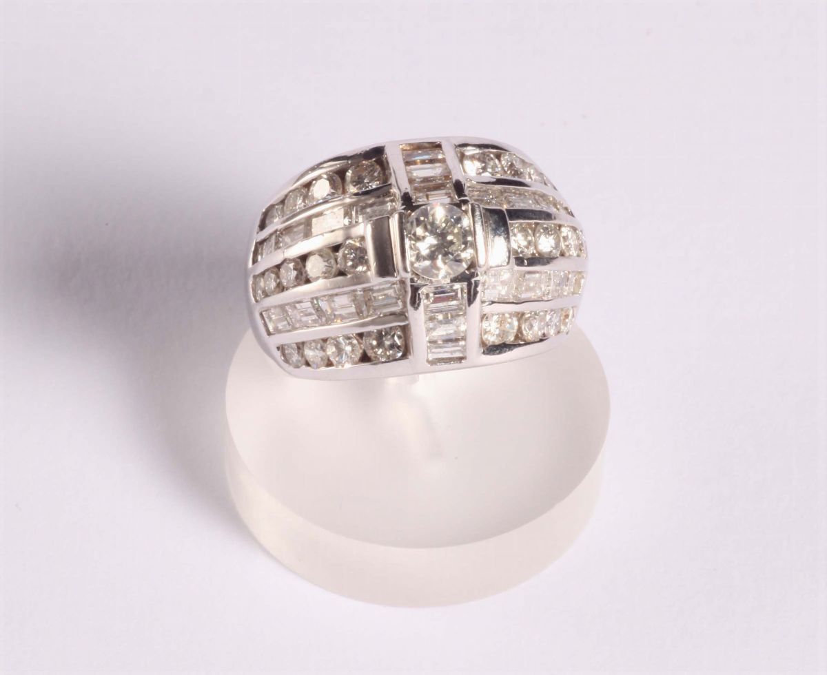 diamanti taglio rotondo e baguettes. Montatura in oro bianco 18Kt