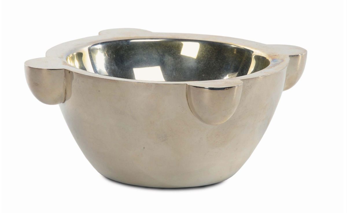 Secchiello e mortaio in argento (mortaio con marchio V. Ponzone), XX secolo