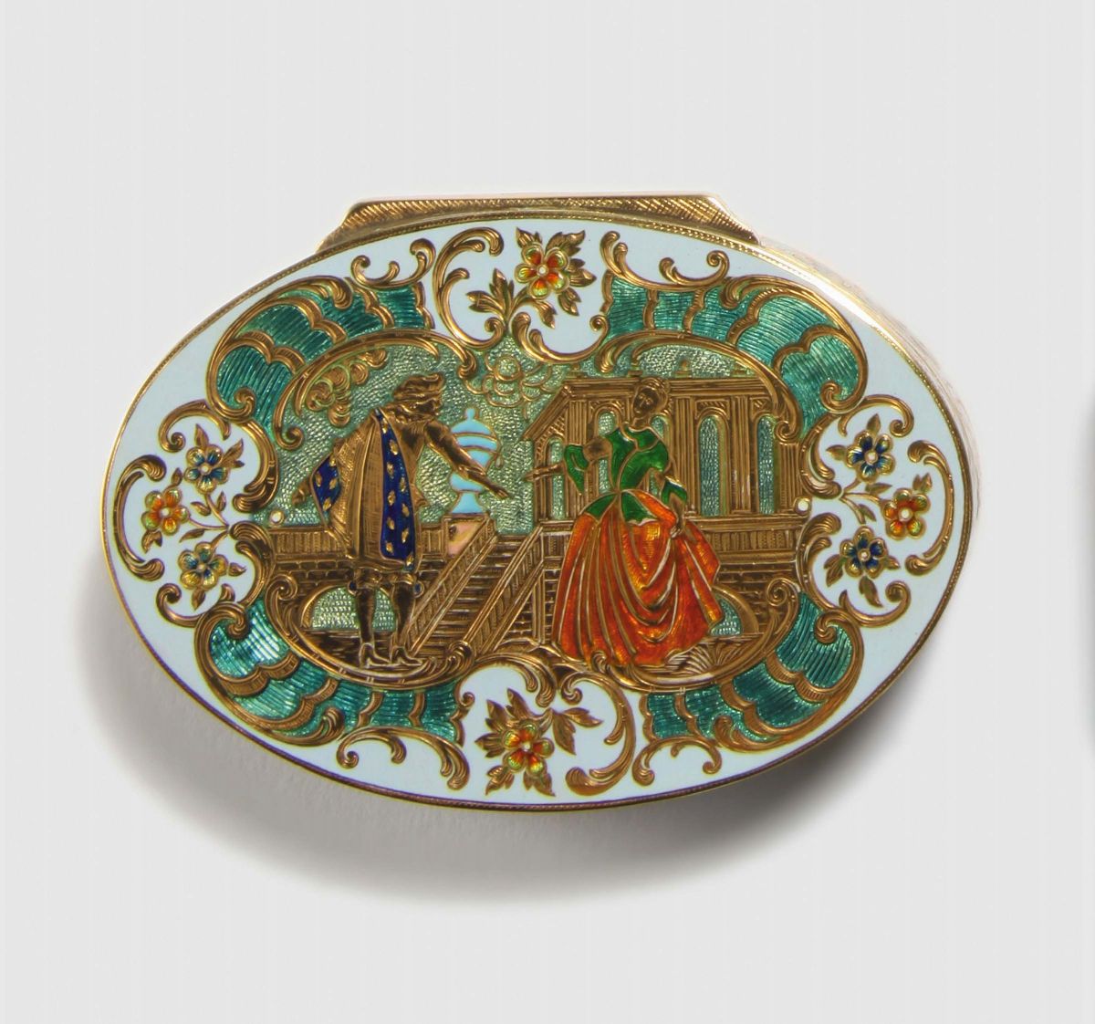 Scatola in oro e smalto18Kt , Luigi XV. Fattura XX secolo