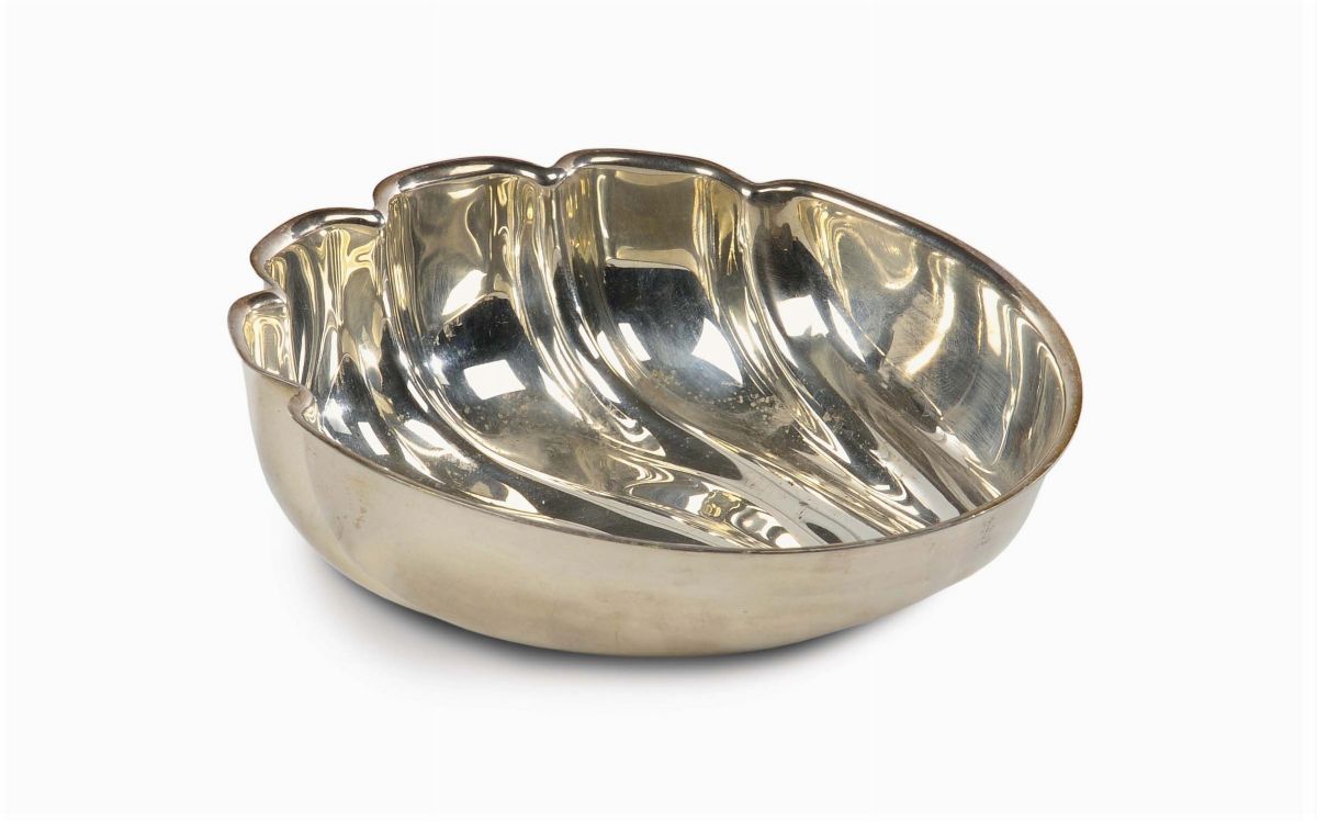 Centrotavola a conchiglia in argento, marchio Job Art, anni '60-'70