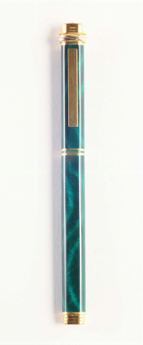 Penna Cartier lacca verde, placcata oro con scatola e garanzia