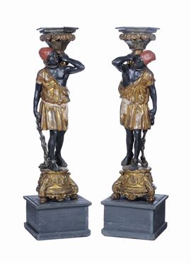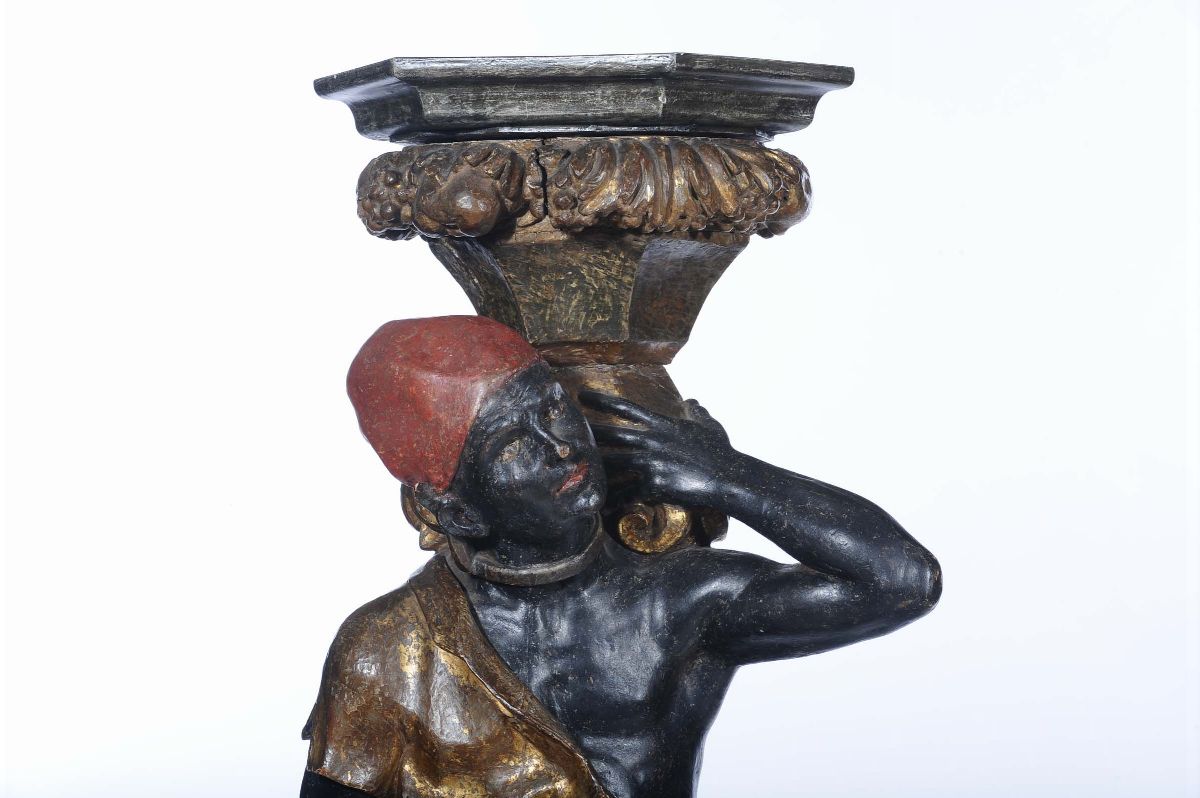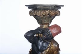 Coppia di gueridon in legno a foggia di moretti, Veneto XVIII secolo