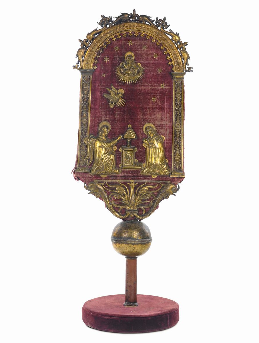 Pala processionale in rame dorato con raffigurazione di Annunciazione e Crocifissione, Venezia XV secolo