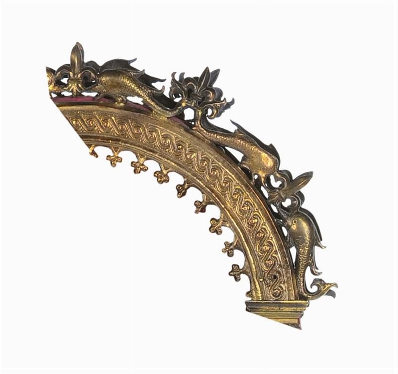 Importante e rara produzione dell'oreficeria quattrocentesca veneziana, per la monumentalità e per le caratteristiche iconografiche, che richiamano nelle decorazioni la transizione tra i modelli tardo-gotici e quelli rinascimentali. Già Sotheby's, Londra 1985, lot 18