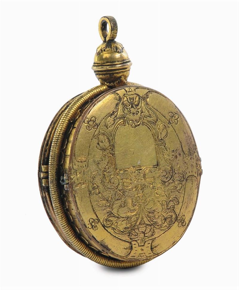 Pendente bivalva in bronzo fuso, dorato e cesellato, Norimberga XVI secolo