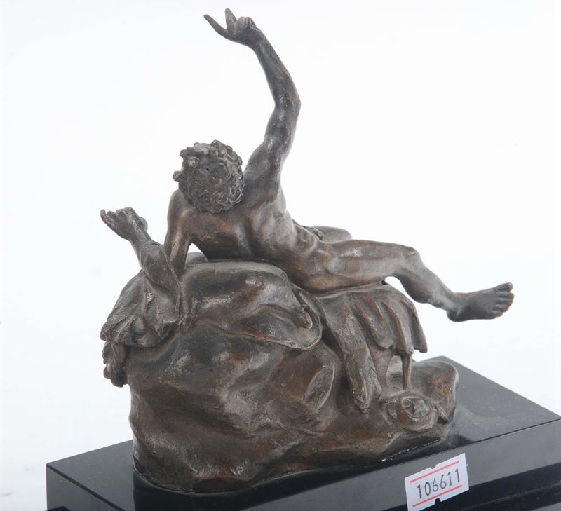 Scultura in bronzo raffigurante satiro ebbro, Italia o Francia XIX secolo