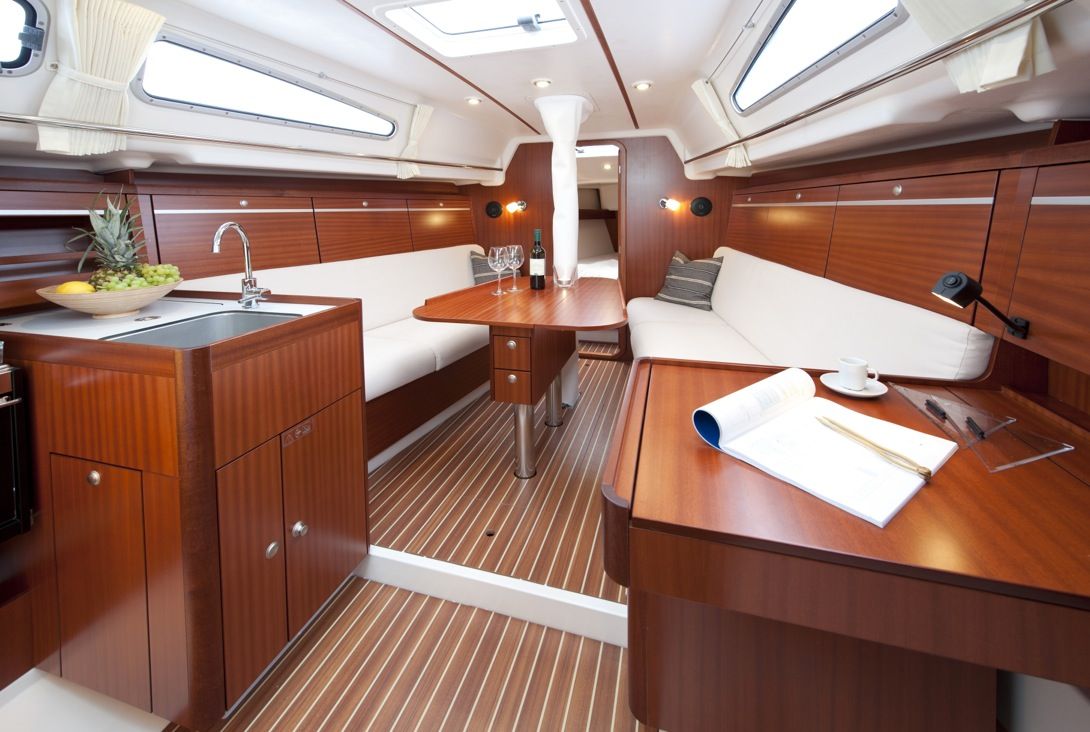 Jeanneau made its entry into the crowded 40’ racer/cruiser fleet with the Sun Fast 40. Jeanneau asked designer Daniel Andrieu to create a true multi-purpose boat, with speed potential to keep up with other 40’ racer/cruisers, yet retain a comfortable interior for cruising and weekending. Sun Fast 40 is also the only boat in its category to benefit from a twin-wheel design that provides access to the swim platform and visibility along with comfort to the helmsman.