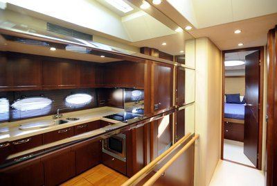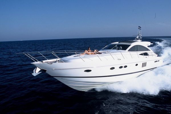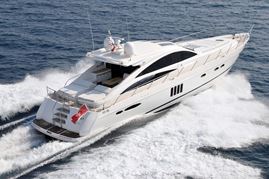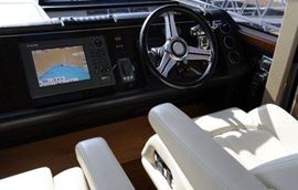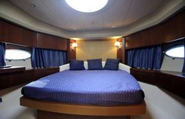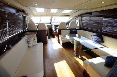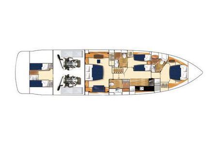 The V series is the sporty range of the British boatyard. The fairly 22 metres of the 70 offer features like the sociable aft cockpit with a U-shaped dining area and fully-equipped wet bar. A wide sun bed extends over the aft deck which accommodates both the tender garage and twin en-suite crew cabin. The submersible bathing platform makes water sports a real pleasure and is also large enough to hold a tender or jet-ski as required. The main deck is large enough to accommodate both a spacious saloon and a separate circular dining area which shares the open-air flexibility of the sliding hard top with the helm.