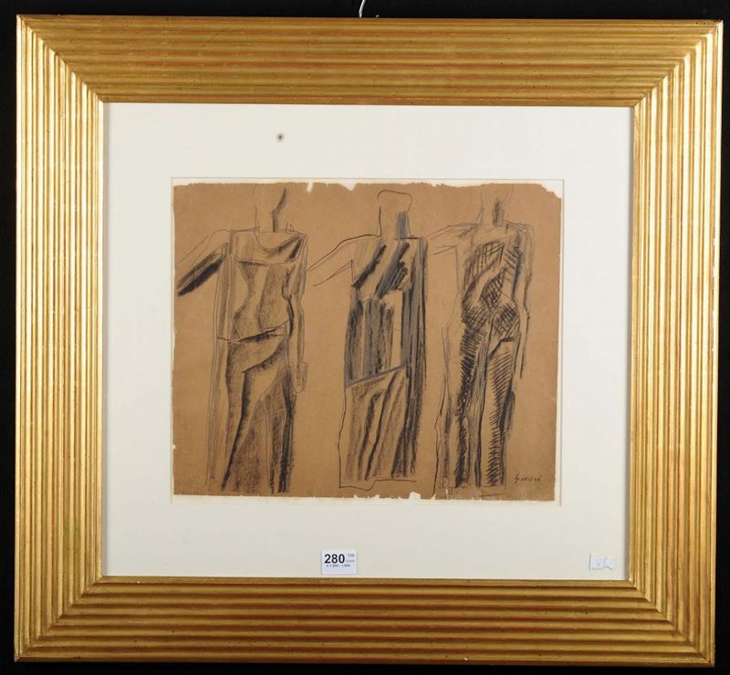matita e carboncino su carta, cm 34x42, firmato in basso a destra