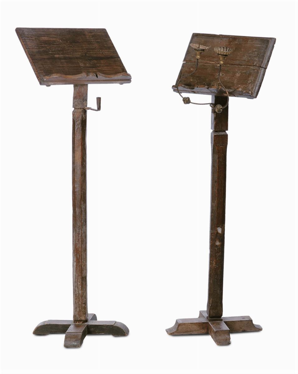 Due leggii da terra in legno con applicazioni in metallo, XVIII-XIX secolo