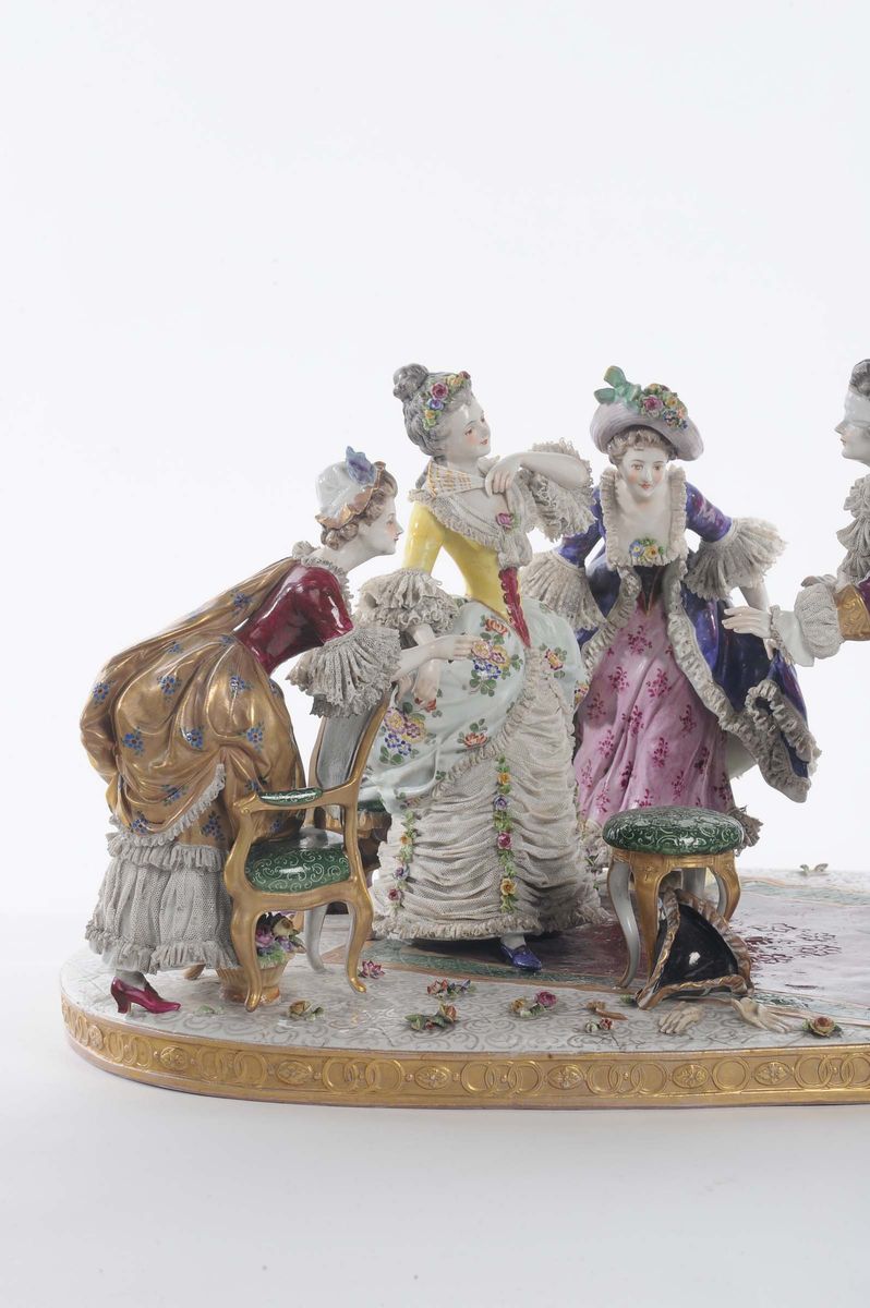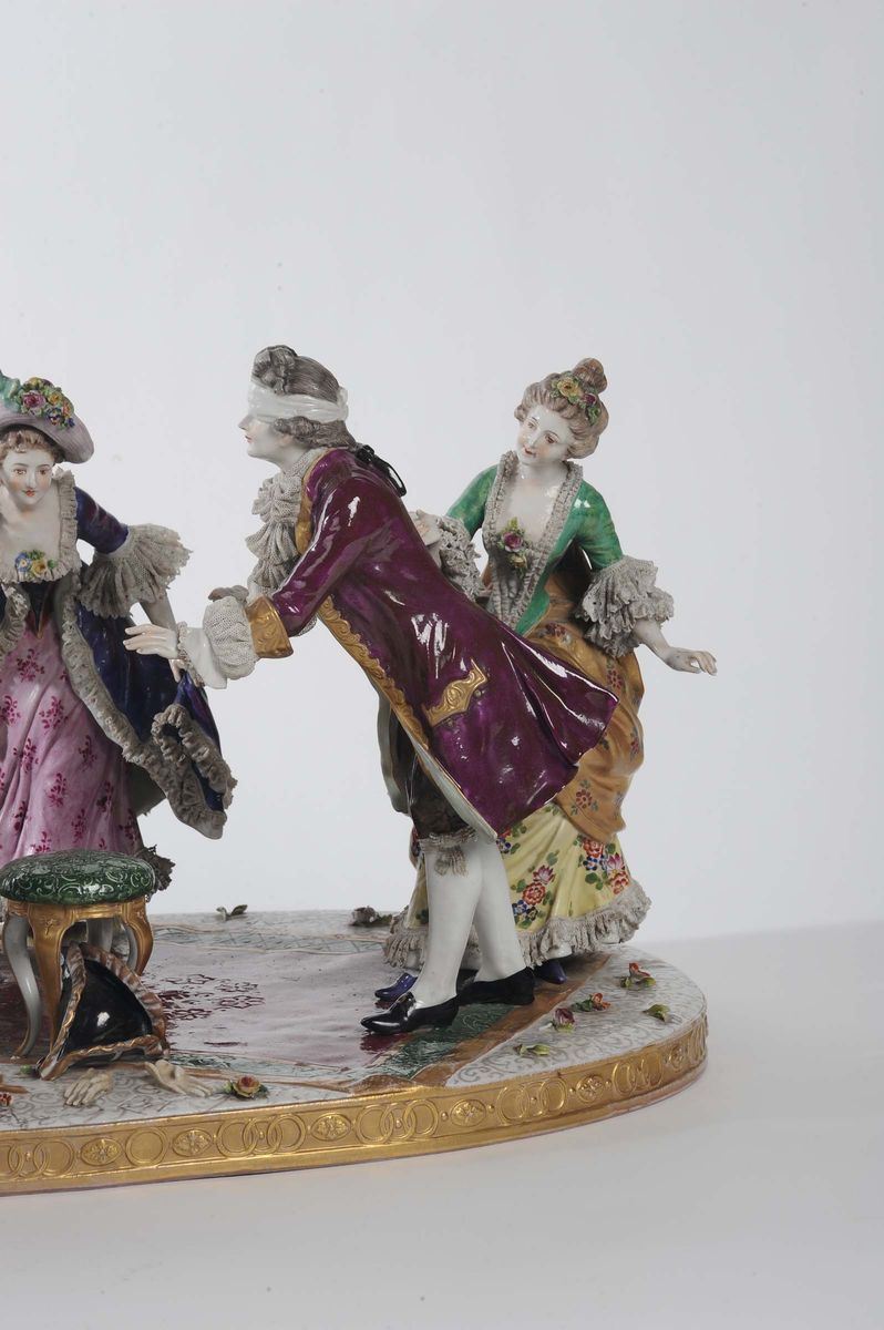 Gruppo in porcellana Capodimonte raffigurante scena galante