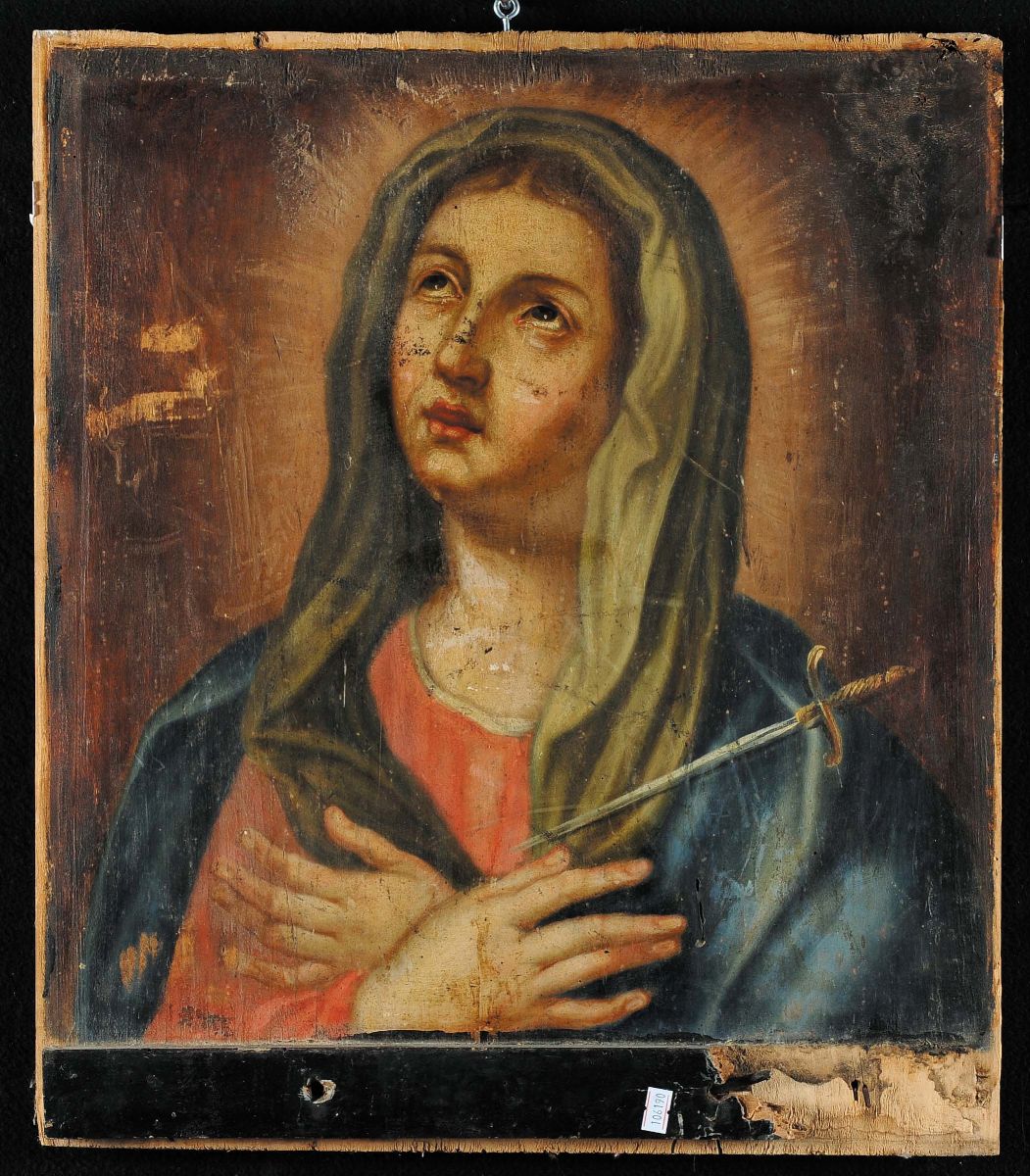Coppia di tavole dipinte su ambo i lati con raffigurazioni religiose, XVIII secolo