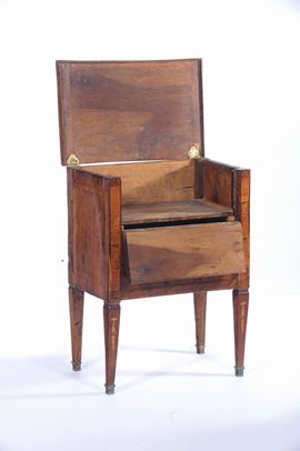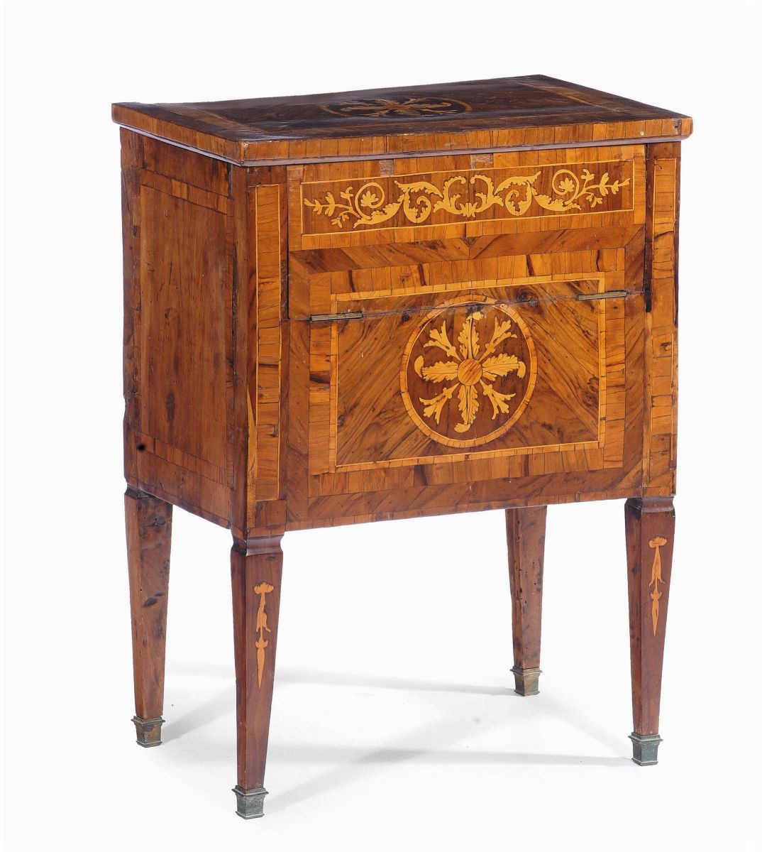 Comodino Luigi XVI interamente lastronato ed intarsiato, XIX secolo