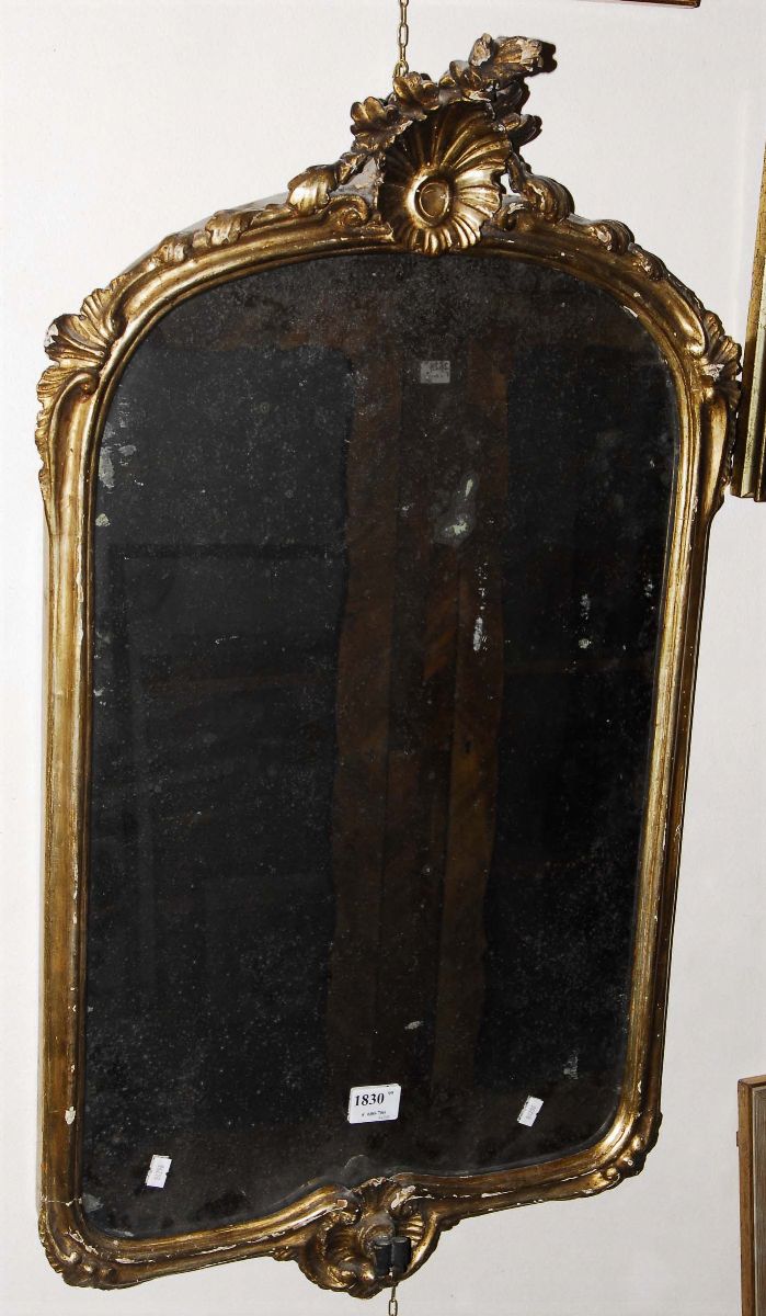 Specchiera in legno intagliato e dorato, Napoli XVIII secolo