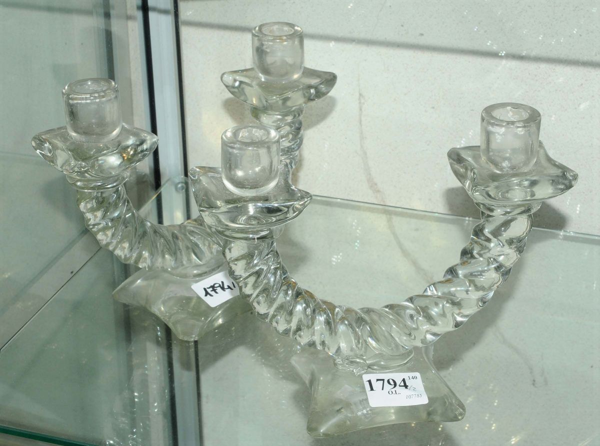 Coppia di candelieri in vetro a due luci