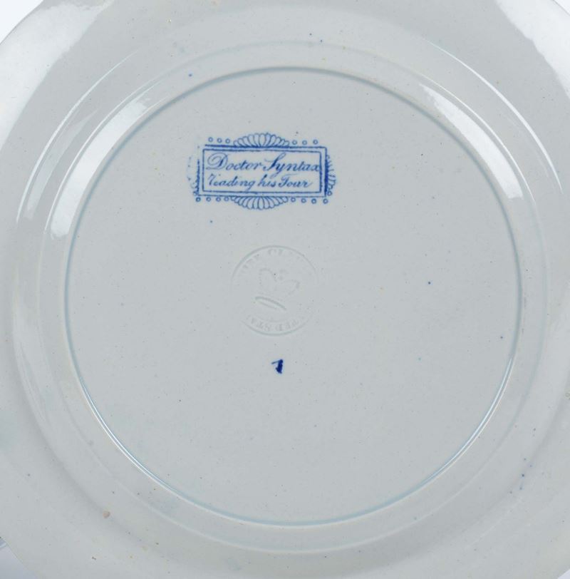 Lotto di quattro piatti in ceramica decoro bianco e blu