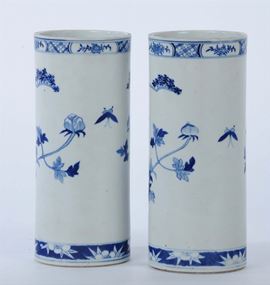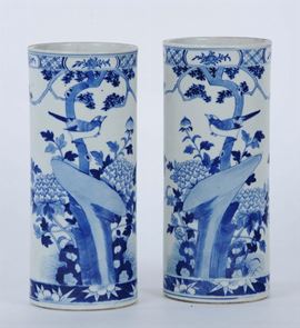 decoro monocromo blu e bianco con uccelli e motivi vegetali, altezza cm 35