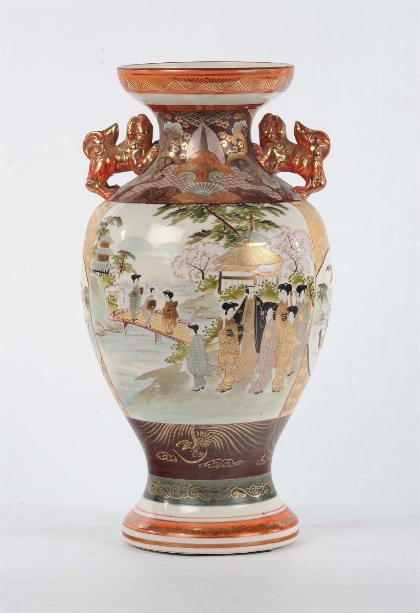 decoro policromo con paesaggi e personaggi, altezza cm 47