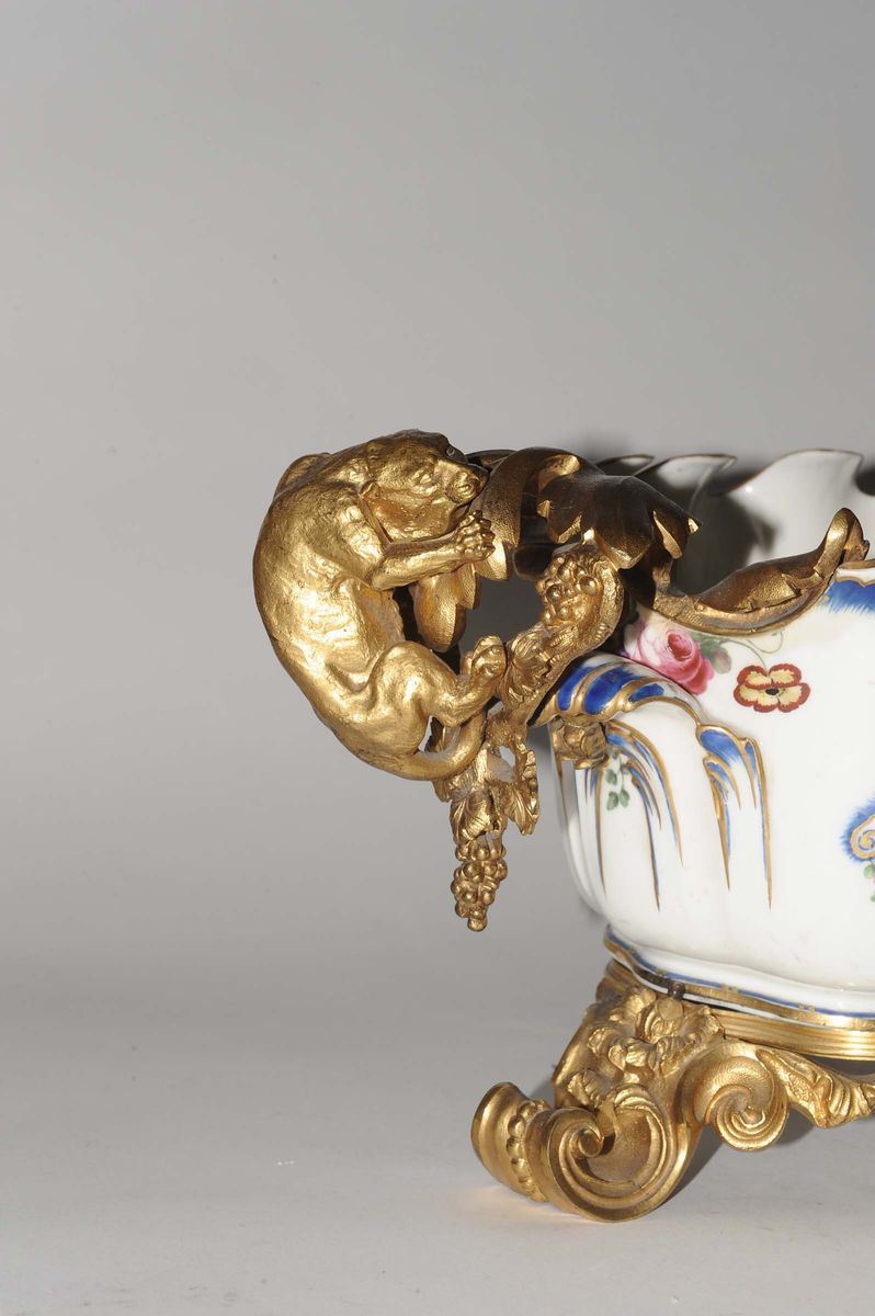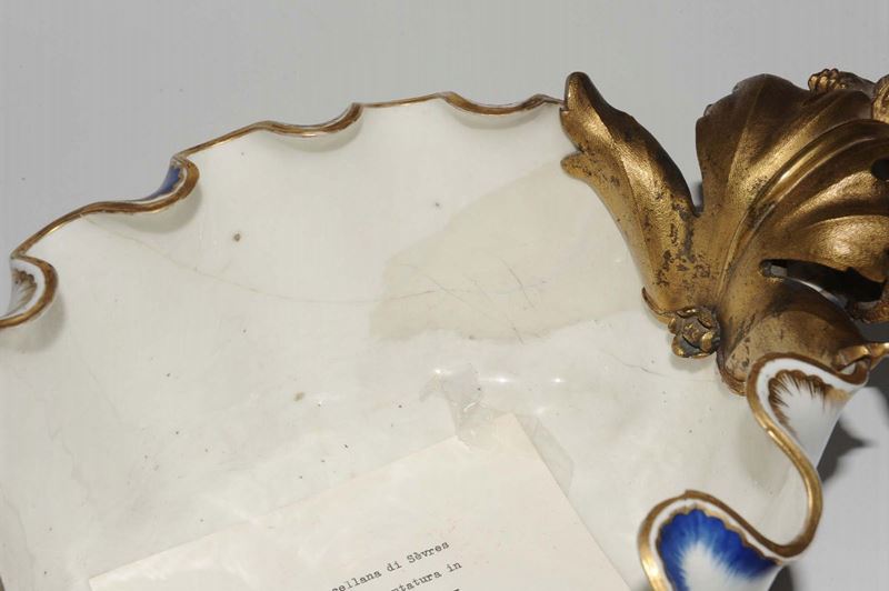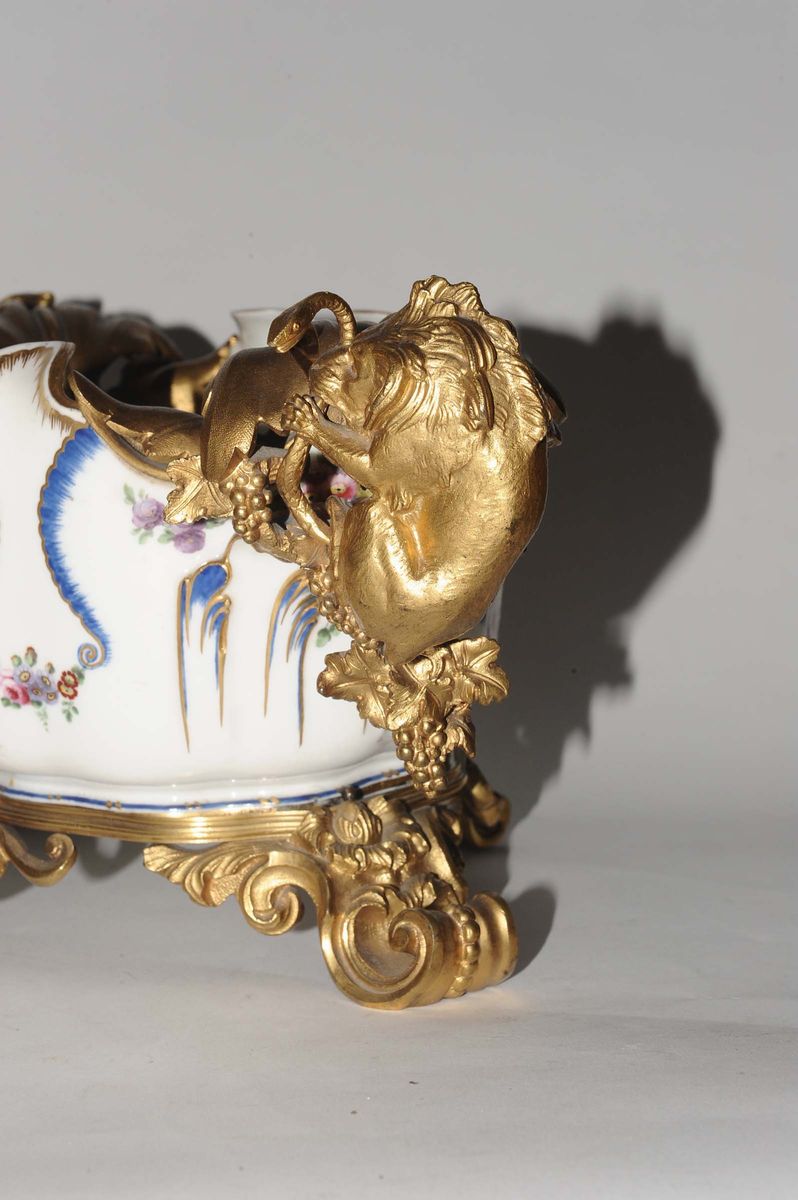 Centrotavola in porcellana Sevres con applicazione di bronzi dorati