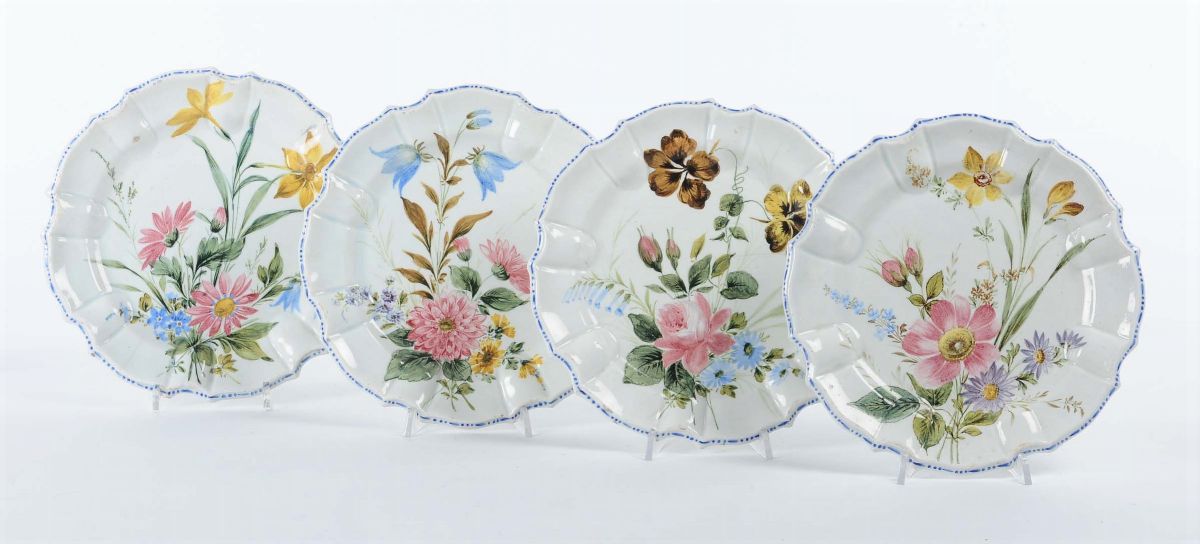 Quattro piatti sagomati in ceramica di Bassano