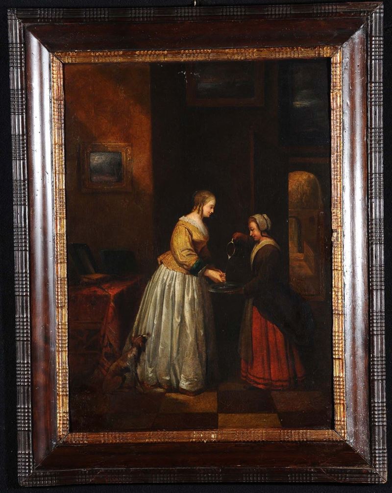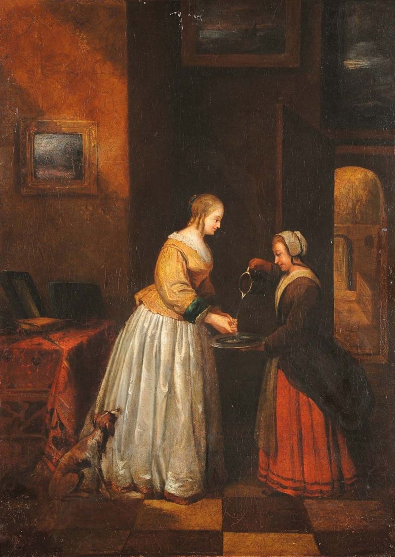 Scuola Fiamminga del XVIII secolo Due figure in interno