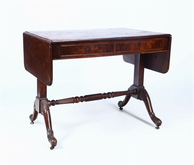 Scrittoio Carlo X a bandelle in mogano a due cassetti, XIX secolo