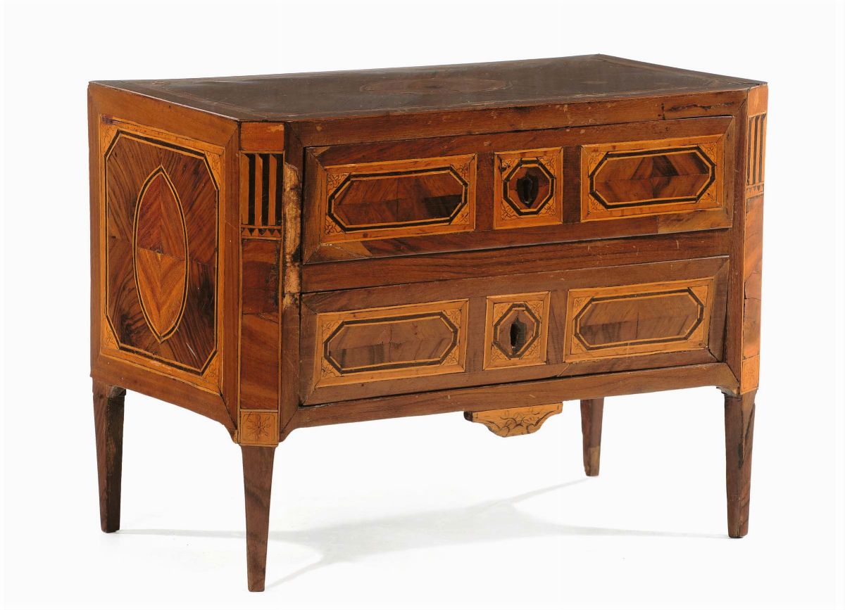 Modellino di cassettone Luigi XVI interamente lastronato, inizio XIX secolo