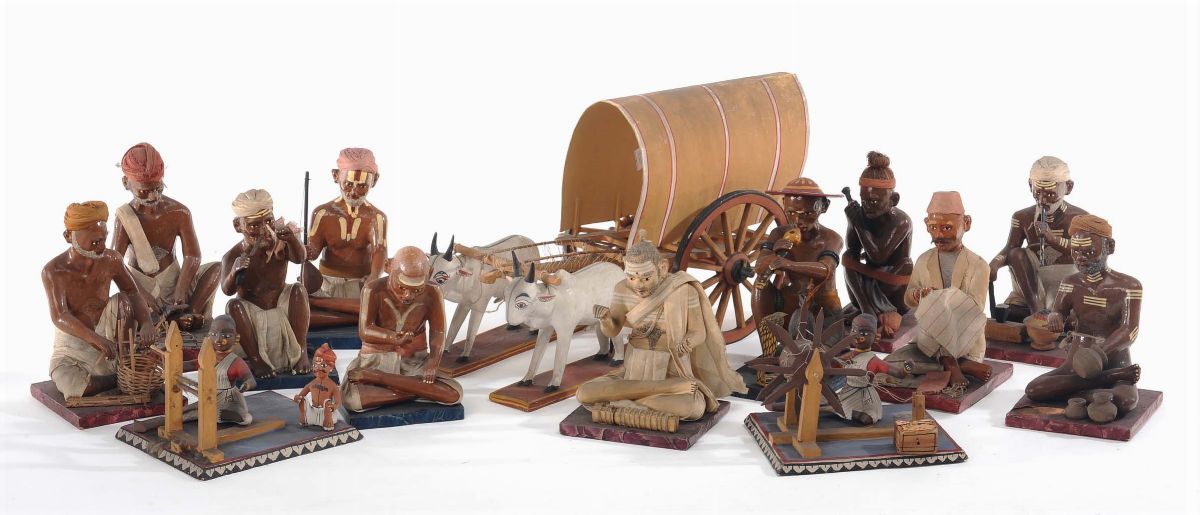 Insieme di 15 statuine indiane con personaggi