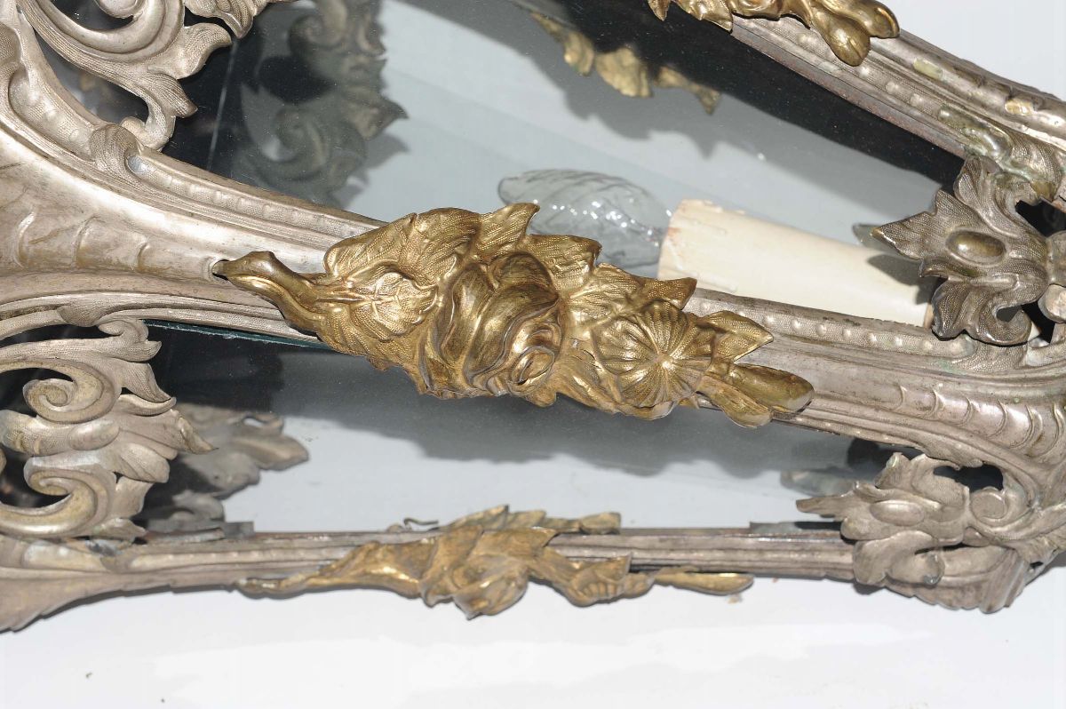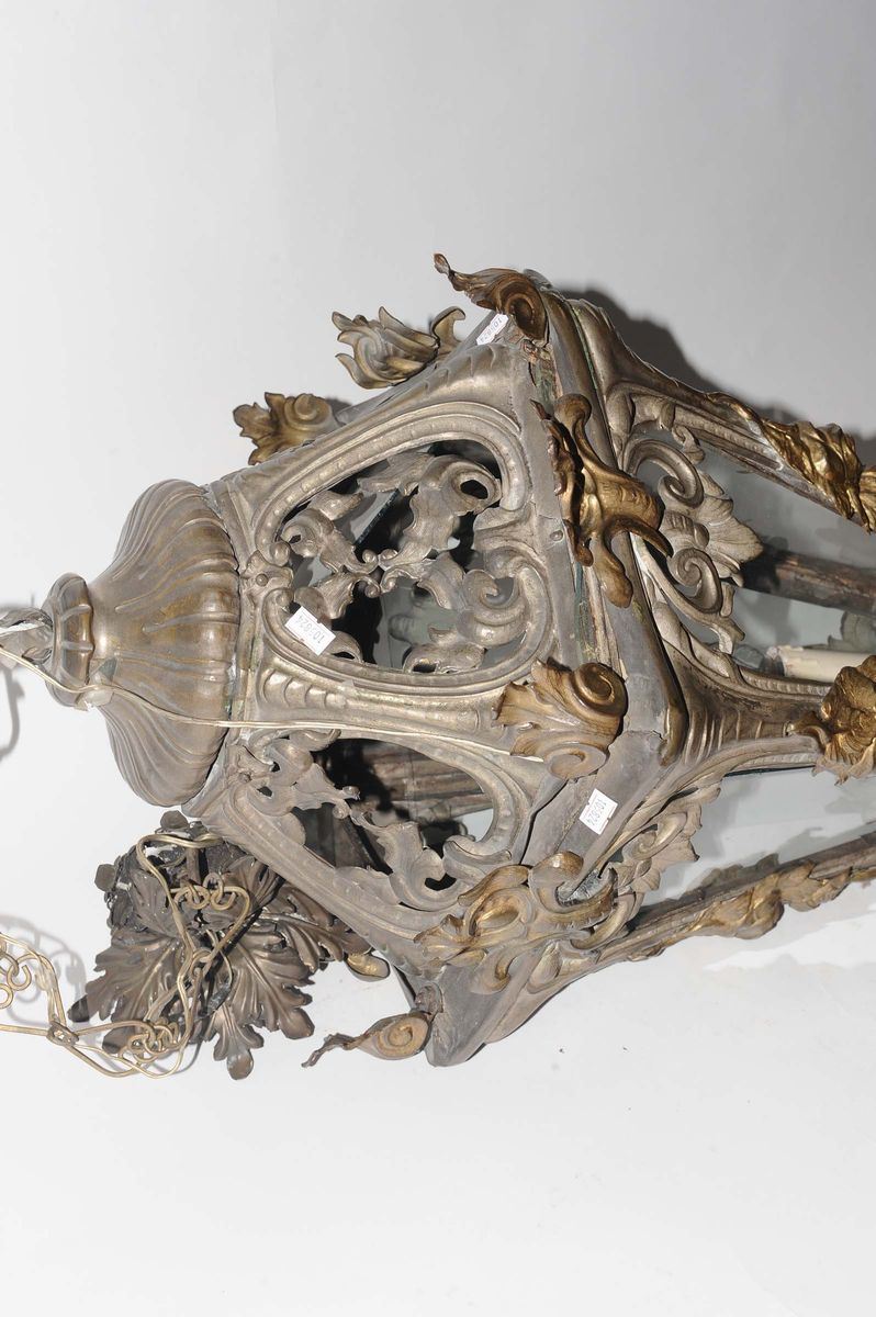 Lucerna in lamierino sbalzato a volute ed elementi vegetali
