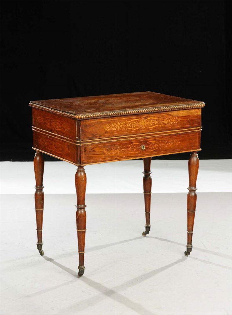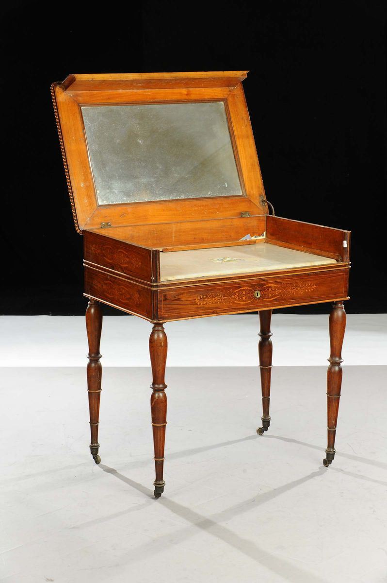 Toilette Carlo X in legno intarsiato a motivi vegetali, XIX secolo