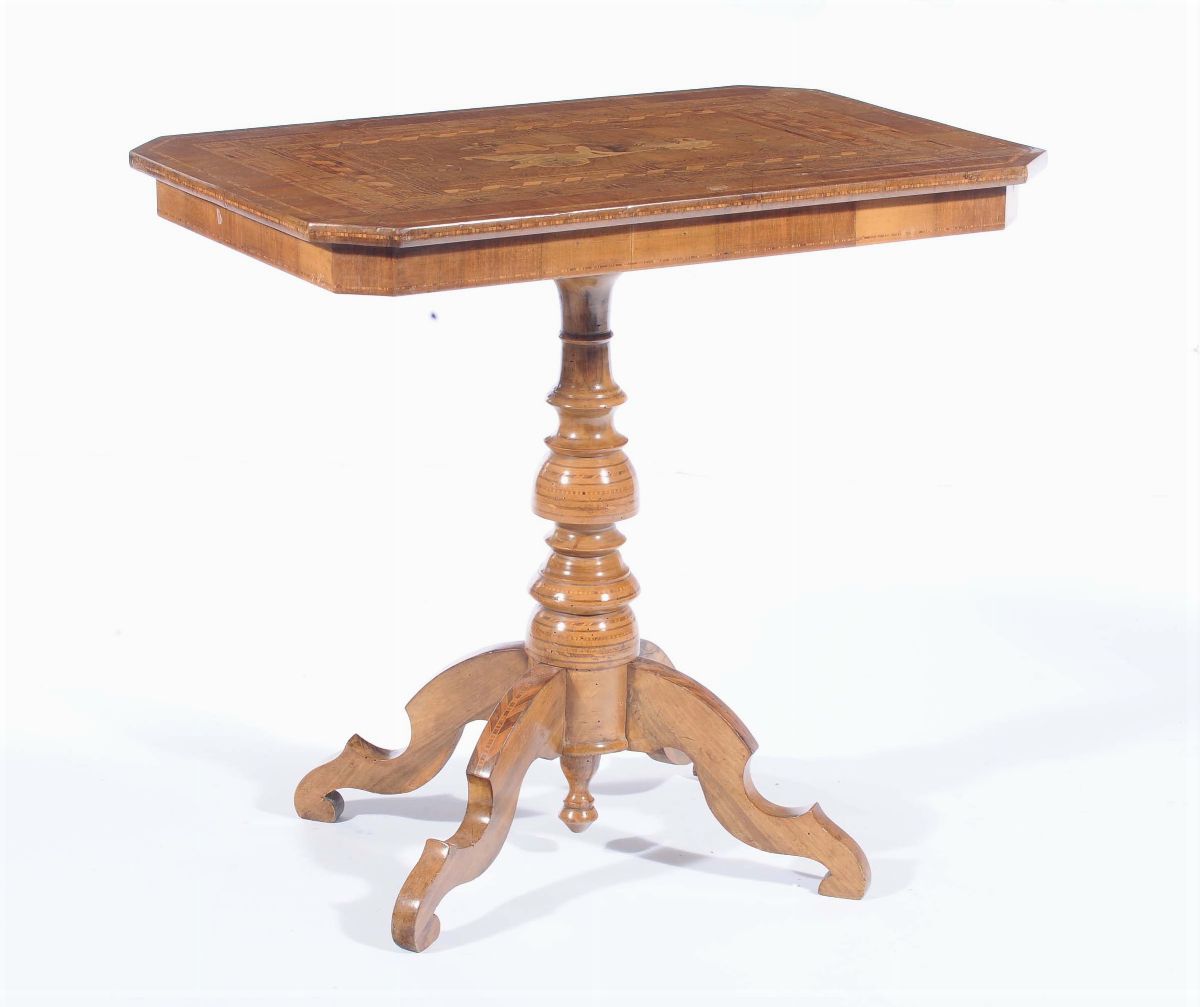 Tavolo Sorrentino rettangolare intarsiato, XIX secolo