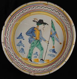 Tre grandi ciotole in ceramica con figure e rosa dei venti