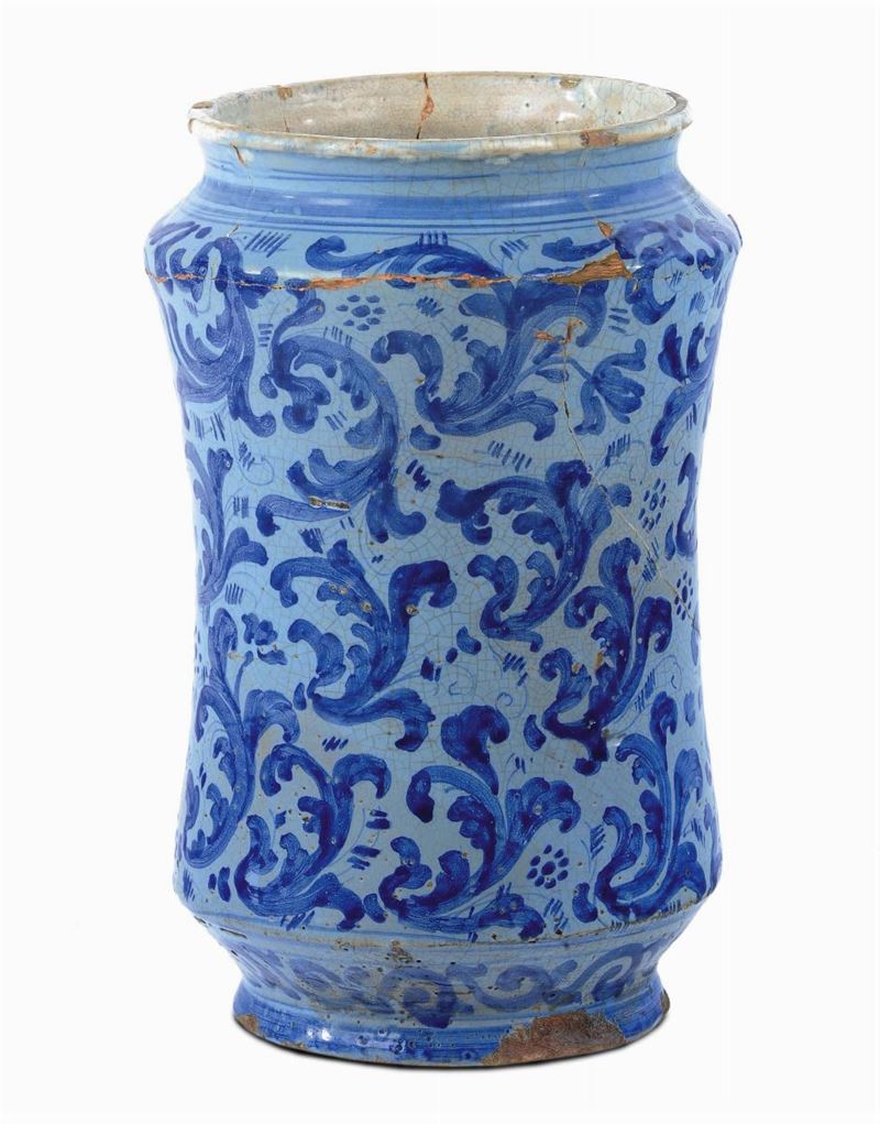 Lotto di due albarelli berrettini in maiolica, Caltagirone XVIII secolo
