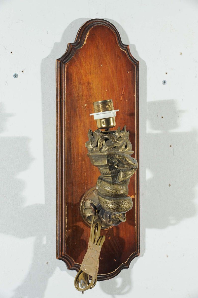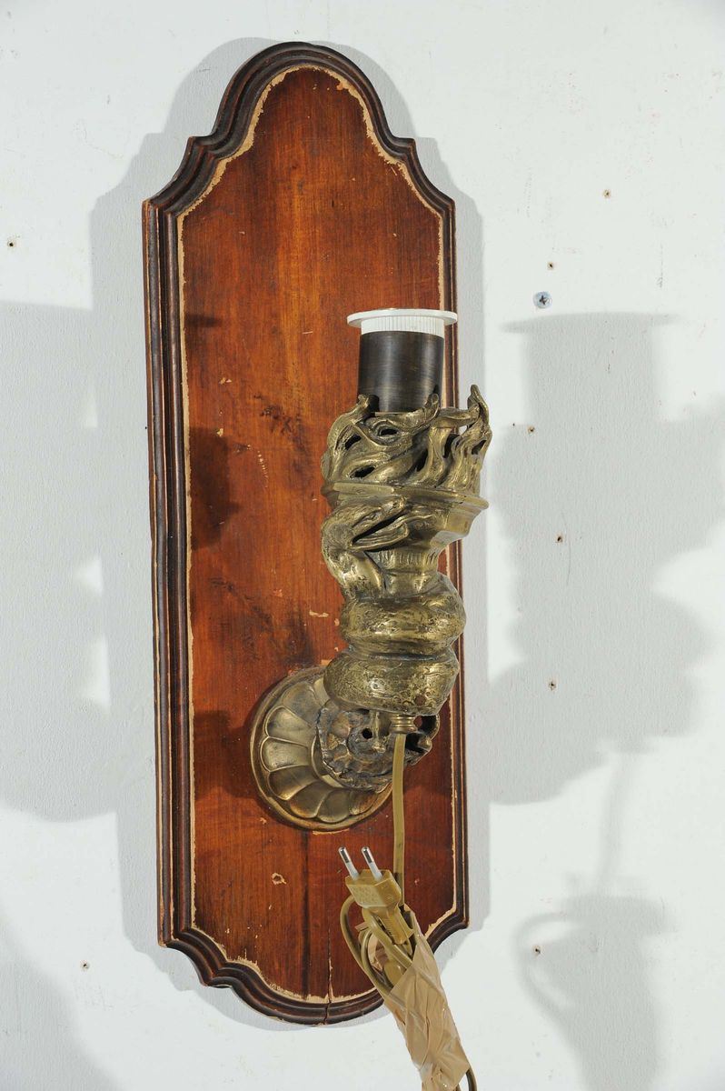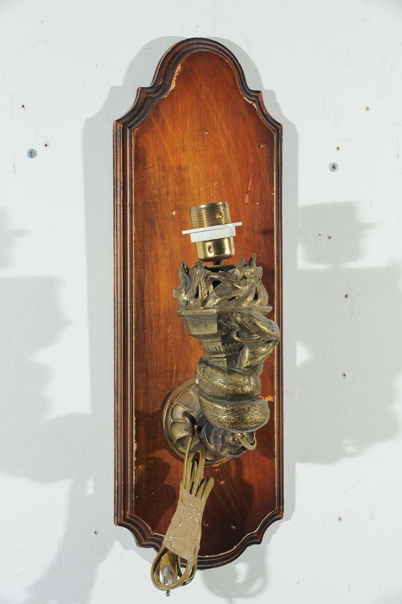 Coppia appliques in bronzo a foggia di serpente
