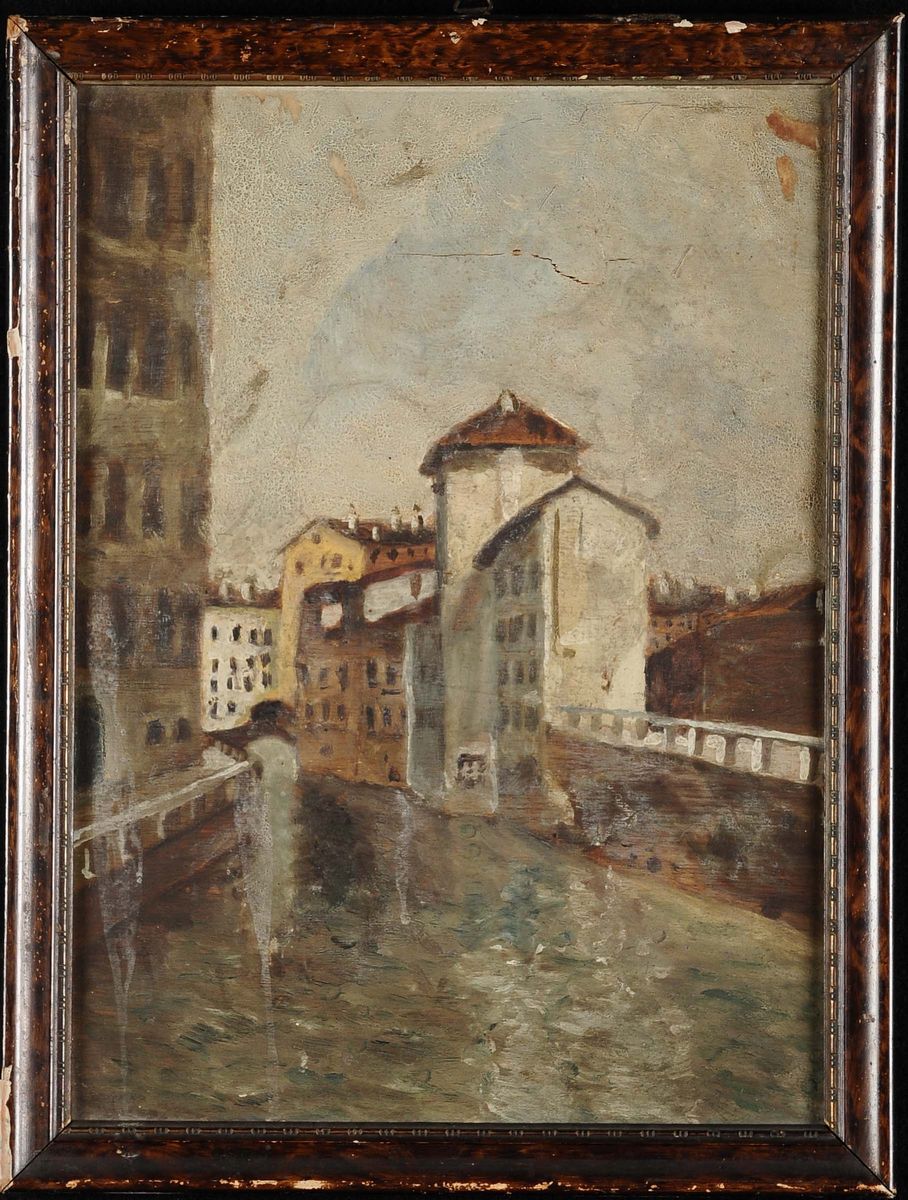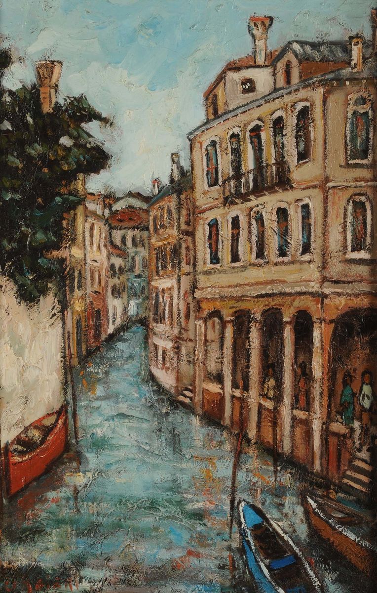 Lotto di tre dipinti con vedute veneziane
