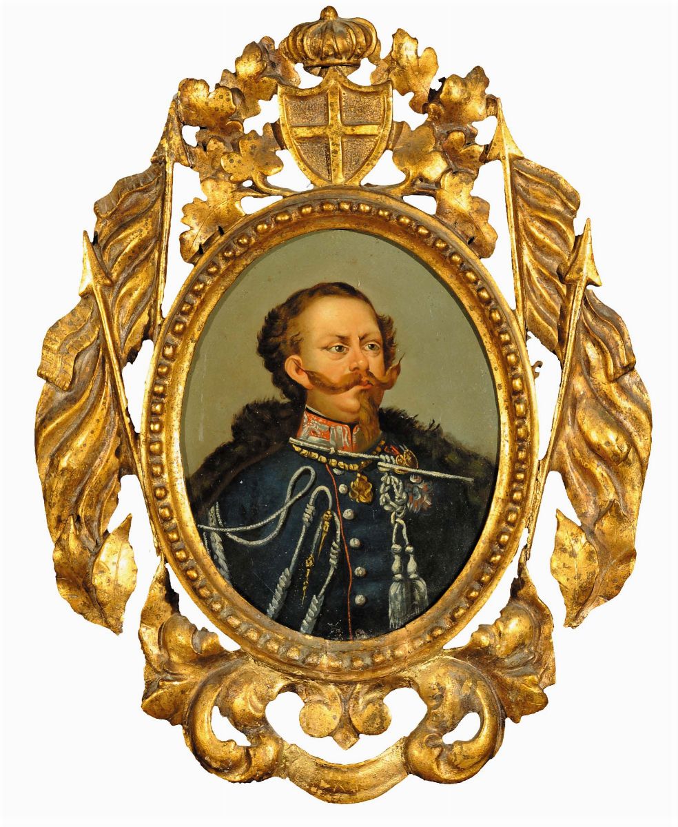 olio su tavoletta, cm 30x20, in cornice dorata con stemma Savoia