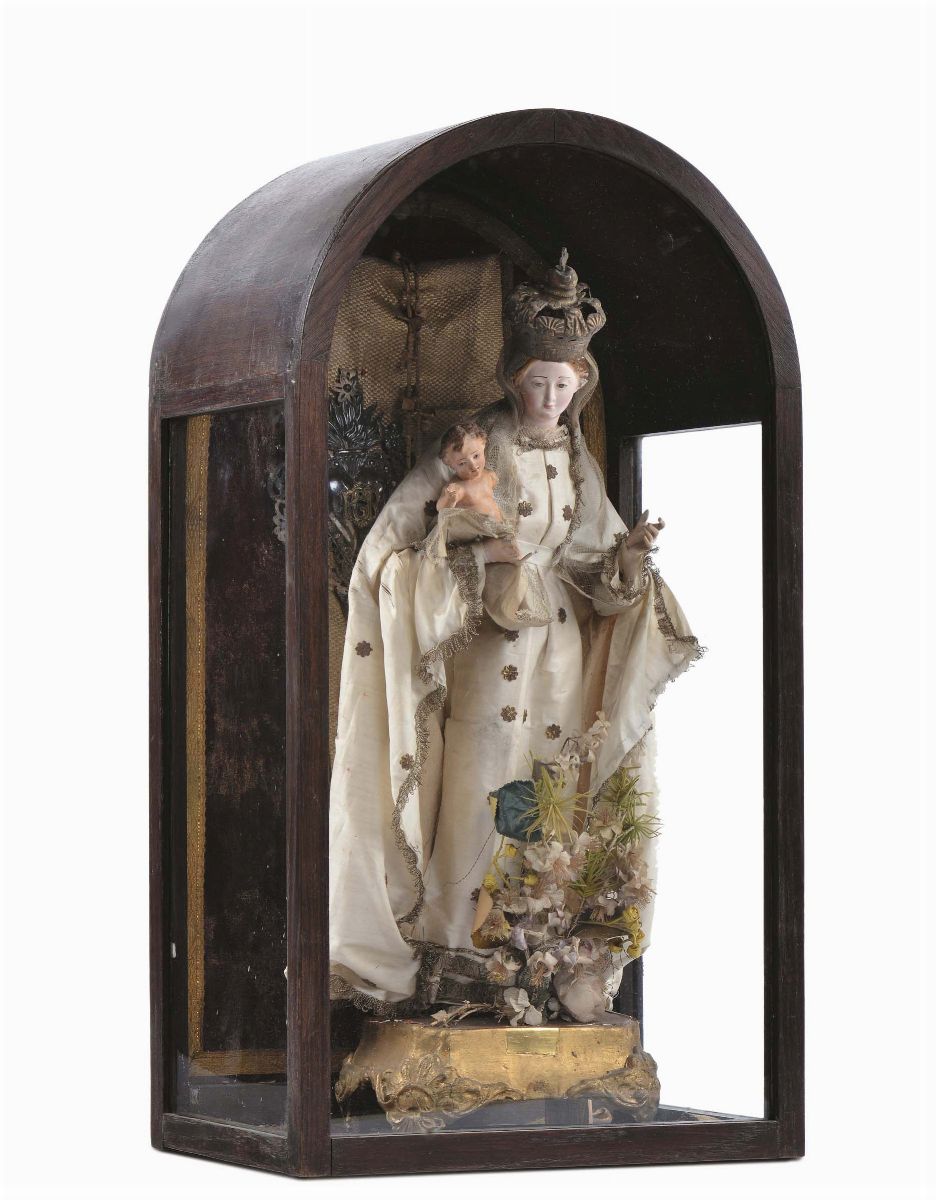 Scultura in terracotta raffigurante Madonna con Bambino, inizio XIX secolo