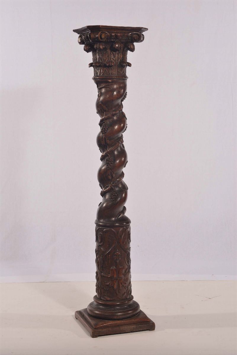 Colonna a torchon in legno intagliato