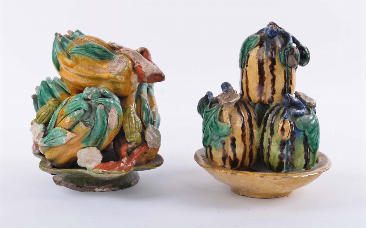 Coppia di ortaggi in maiolica, XVII secolo