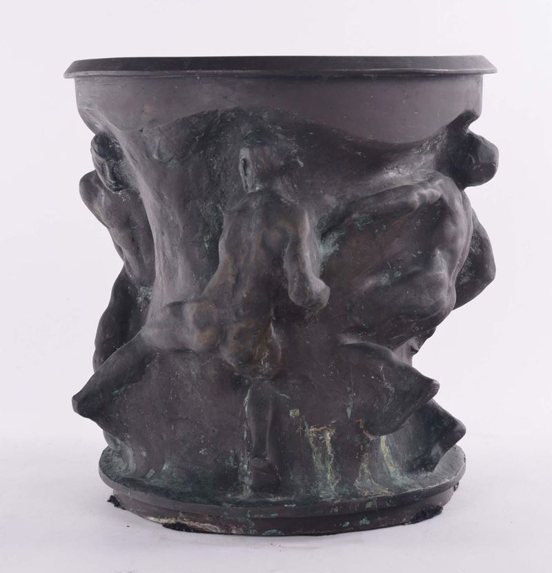 Vaso in bronzo decorato con giganti in bassorilievo