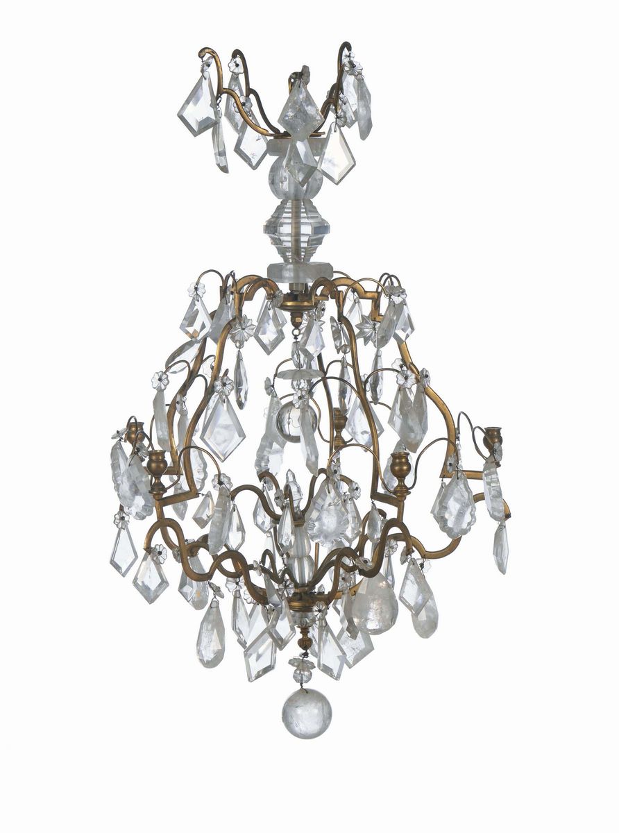 Lampadario in metallo e cristalli di rocca a cinque luci