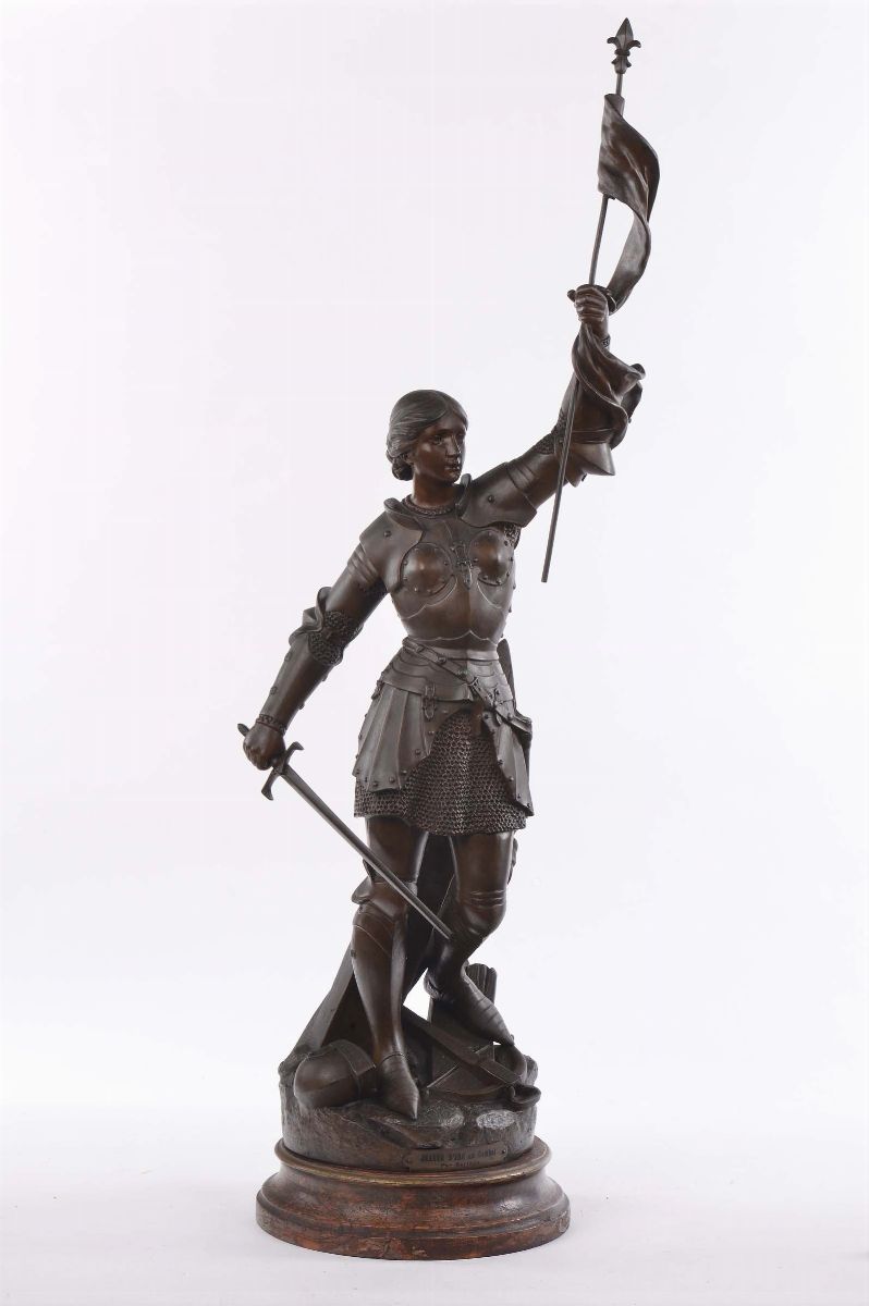 Statua in antimonio raffigurante figura femminile con armatura